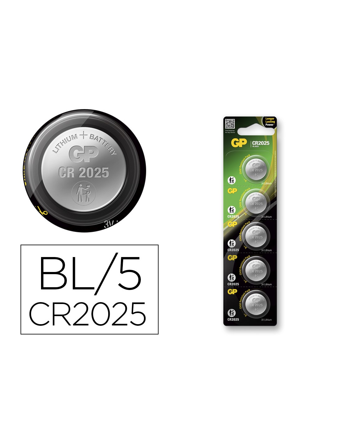 Pila gp alcalina boton litio cr2025 blister de 5 unidades