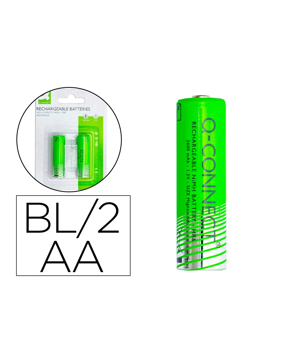 Pila q-connect alcalina aa recargable blister de 2 unidades