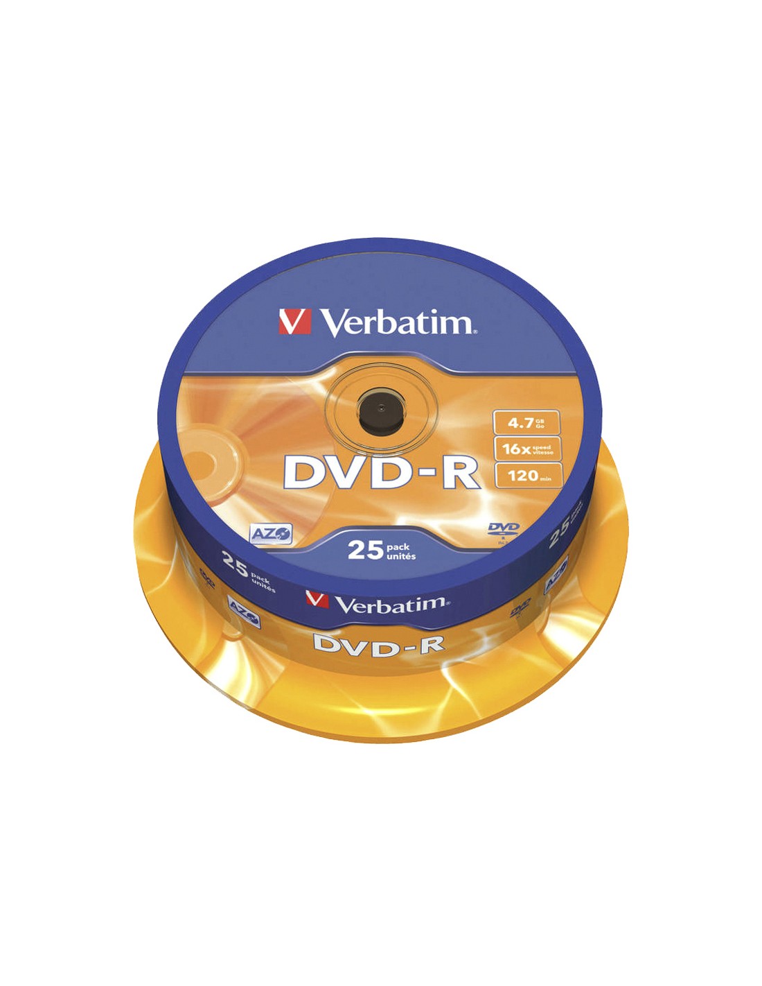 Dvd-r verbatim capacidad 4.7gb velocidad 16x 120 min tarrina de 25 unidades