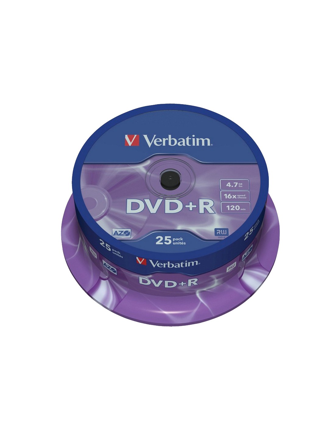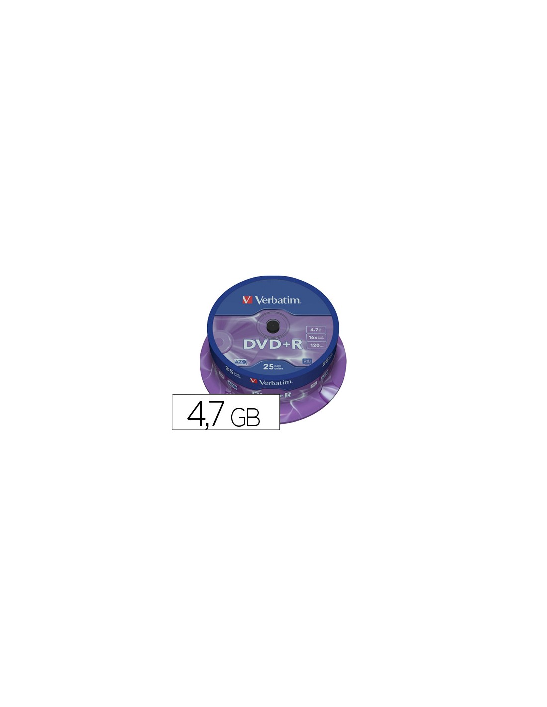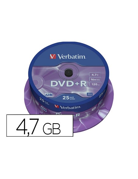 Dvd+r verbatim capacidad 4.7gb velocidad 16x 120 min tarrina de 25 unidades