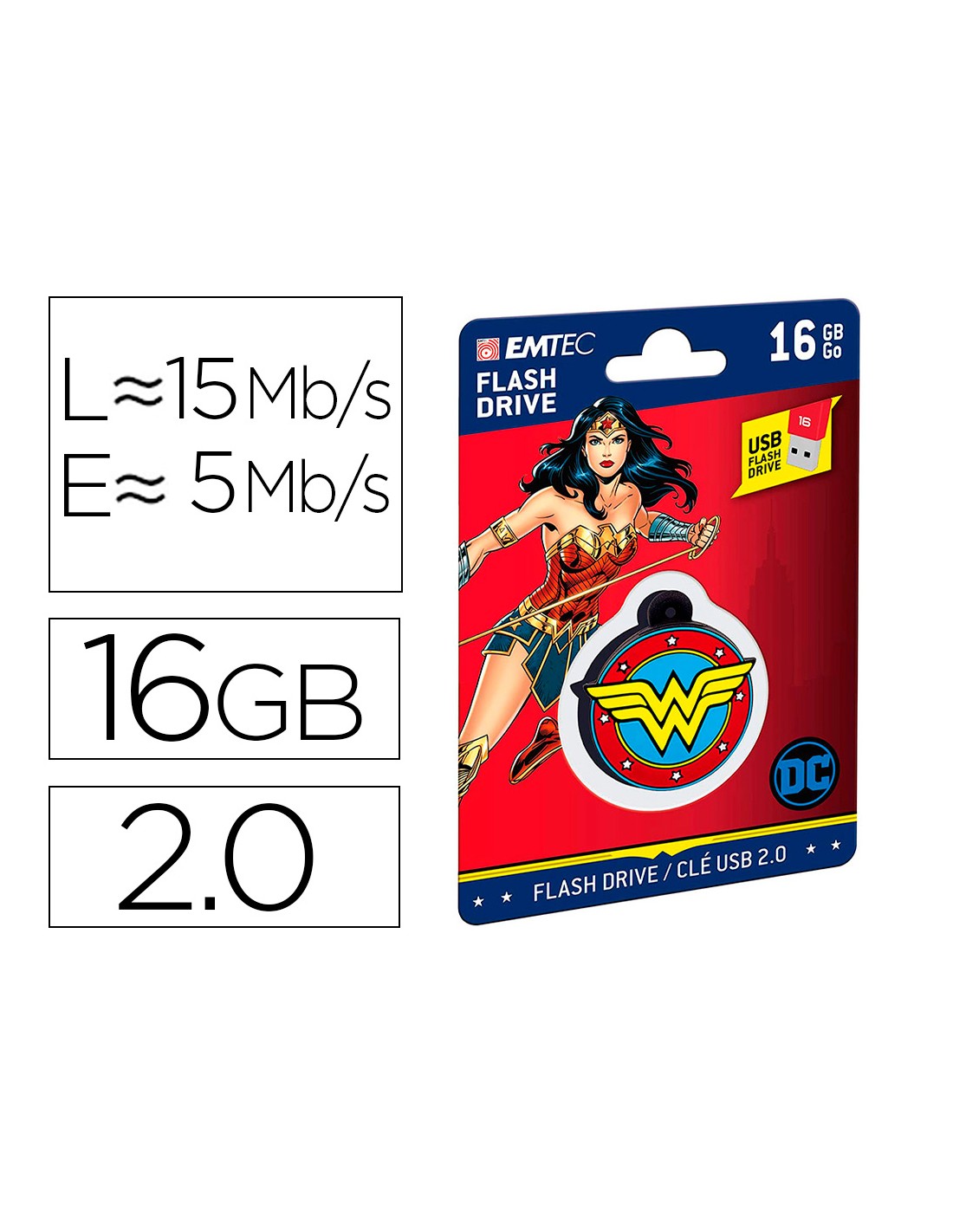 Memoria usb emtec flash 16 gb usb 2.0 collector wonder woman
