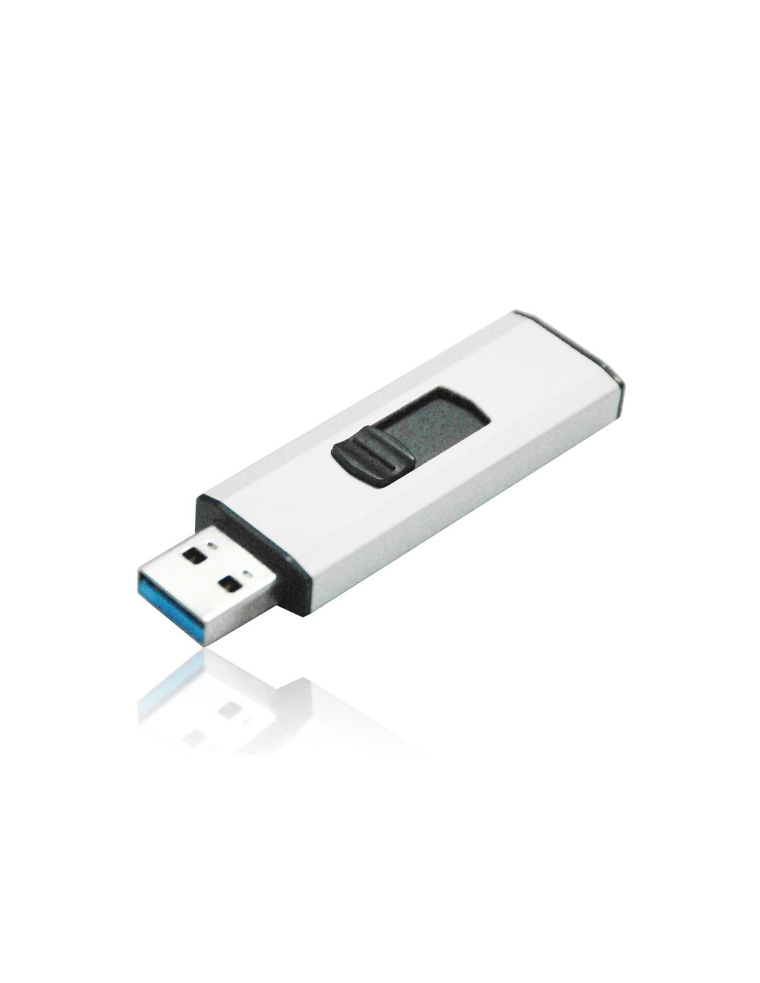 Memoria Flash USB con un excelente rendimiento y gran velocidad. Práctico formato retráctil el conector USB se oculta en el cuerpo compacto, para quedar totalmente protegido sin necesidad de una tapa. Interfaz SuperSpeed 3.0, compatible con USB 2.0. Color plateado. Cuenta con un orificio para colocar un cordón. Medidas 55 x 20 x 7 mm.