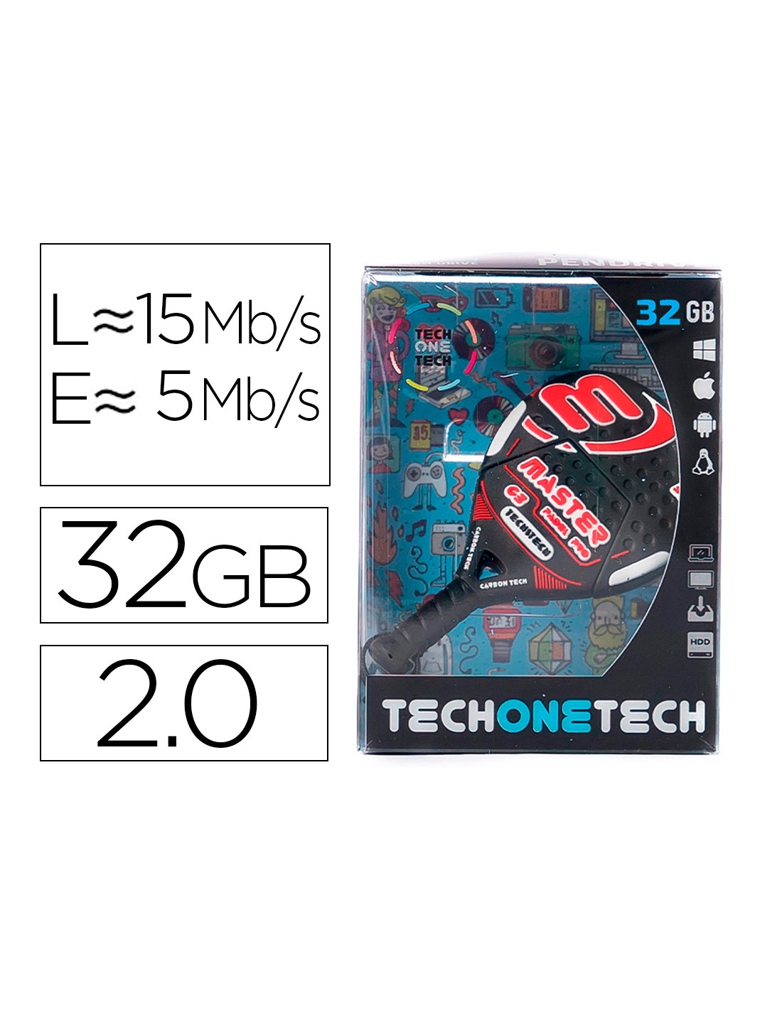 Memoria usb tech on tech raqueta...