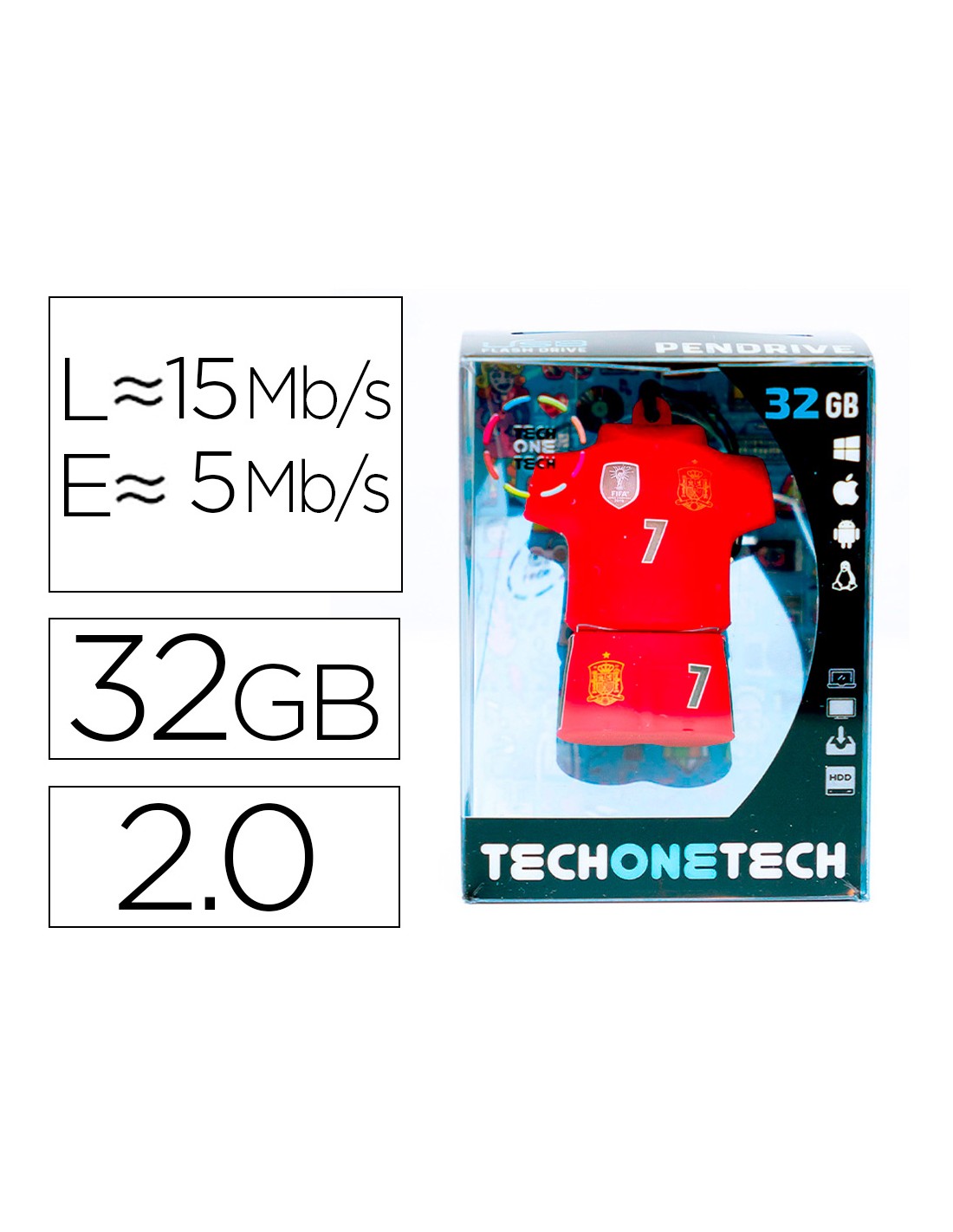 Memoria usb tech on tech seleccion futbol españa mundial brasil 32 gb