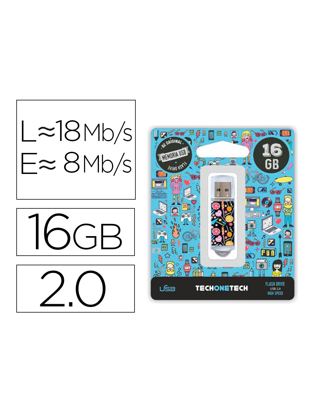 Memoria usb techonetech flash drive 16 gb 2.0 candy pop