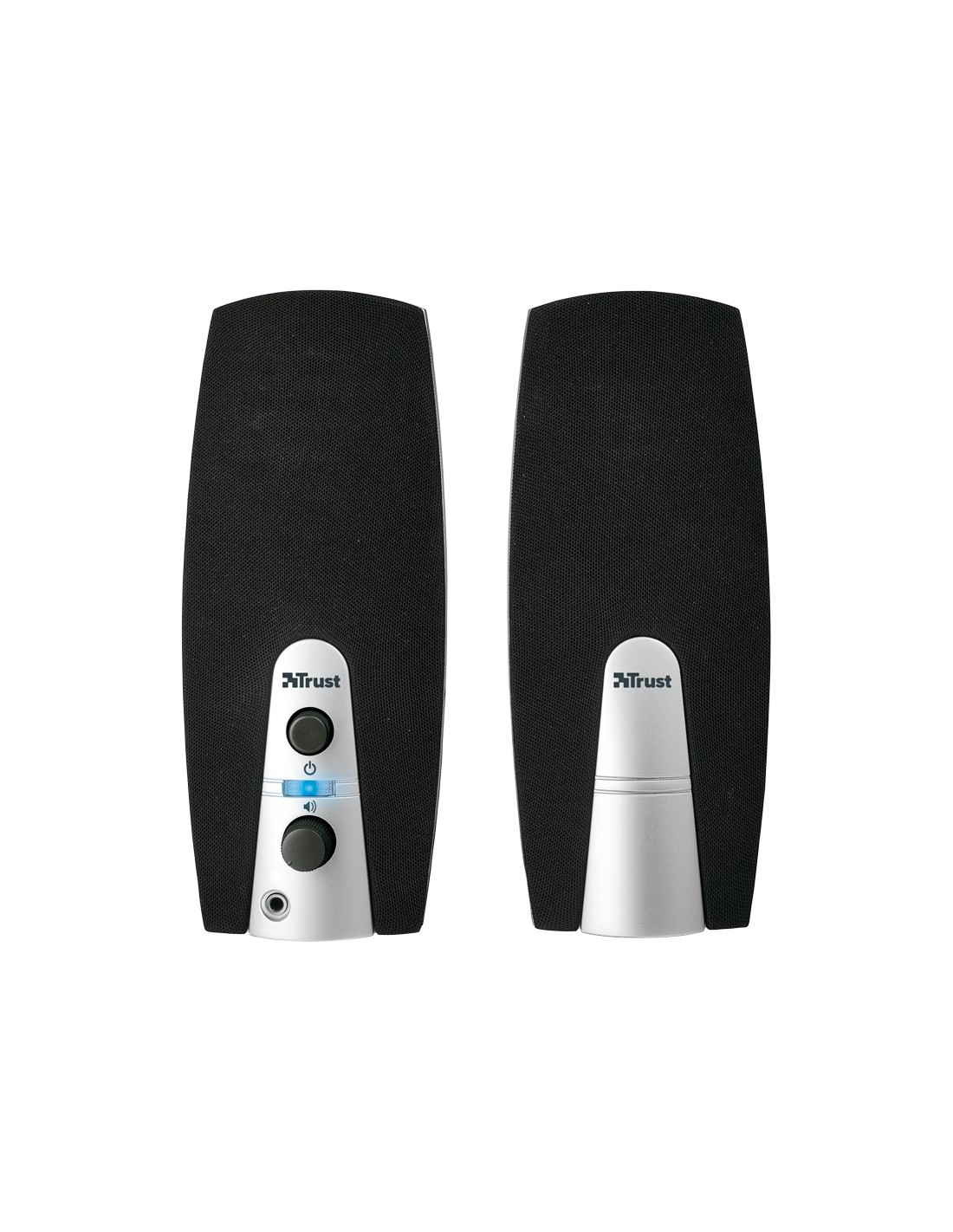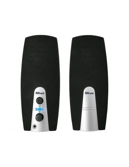 Compacto juego de altavoces estéreo con potencia de salida RMS de 5 vatios (máx. potencia 10 vatios). Para una reproducción más nítida de los efectos de sonido y la música. Apto para PC, ordenadores portátiles, reproductores MP3, etc. Botones de control para encendido y ajuste de volumen. Conexión frontal para auriculares. Medidas 185 x 75 x 95 mm. Peso 772 g.