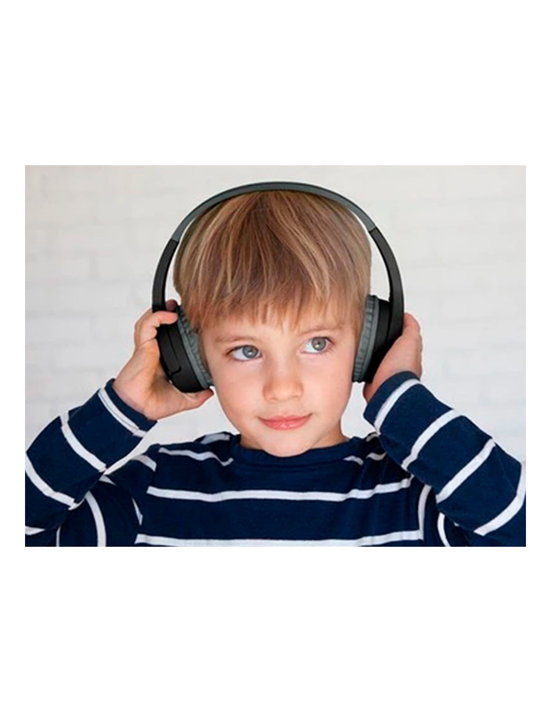 Especialmente diseñados para niños, garantizan la comodidad y su protección auditiva. Limitan el volumen a 85 dB. Con una autonomía de hasta 30 horas. Pruebas de durabilidad certifican un uso seguro de hasta 2 años y resisten las salpicaduras y los golpes accidentales. Un micrófono integrado permite a los niños usar sus dispositivos para hablar con sus profesores y amigos. La función Bluetooth 5.0 ofrece un alcance de 10 m. Puerto auxiliar de 3,5 mm y cable compatible de 1,2 m que ofrecen la posibilidad de conectar los auriculares directamente por cable a otros dispositivos.