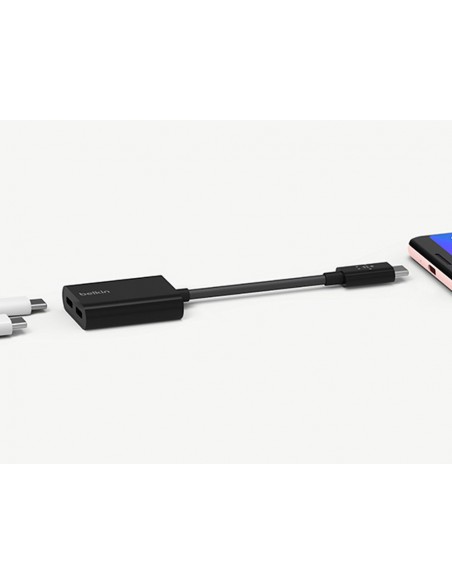 Adaptador belkin f7u081btblk usb-c de audio y carga color negro