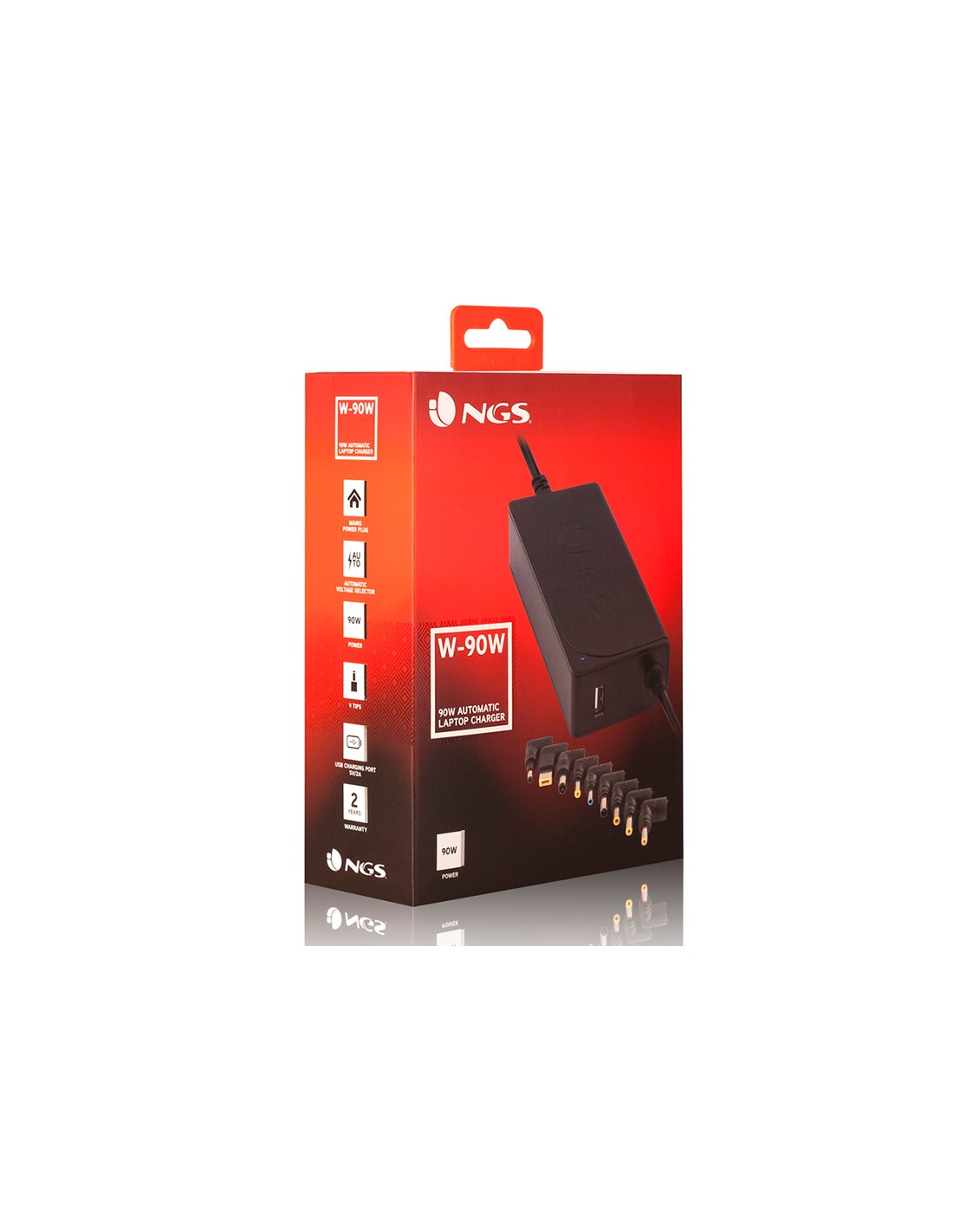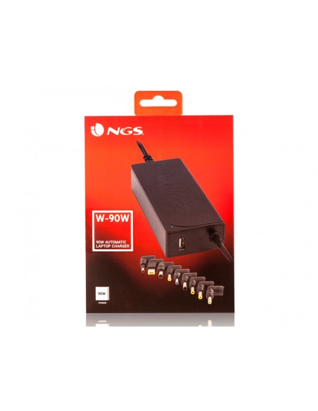 Adaptador de corriente ngs automatic 90w con 9 adaptadores y salida usb 2a