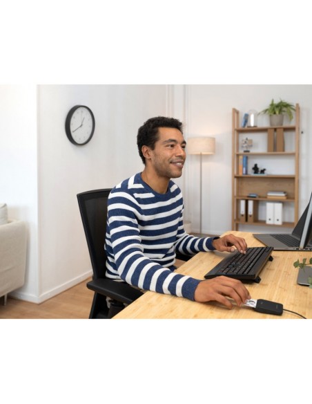 Lector de documentos de identidad para la identificación personal en sitios web y administraciones públicas. Color negro.