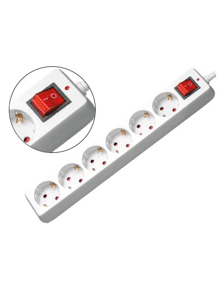 Regleta 6 tomas mediarange con interruptor longitud cable 1,4m color blanco