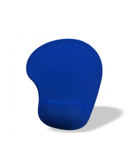 Alfombrilla de ratón con reposamuñecas, relleno de gel. Diseño ergonómico con superficie de tela y base antideslizante. Disponible en varios colores.