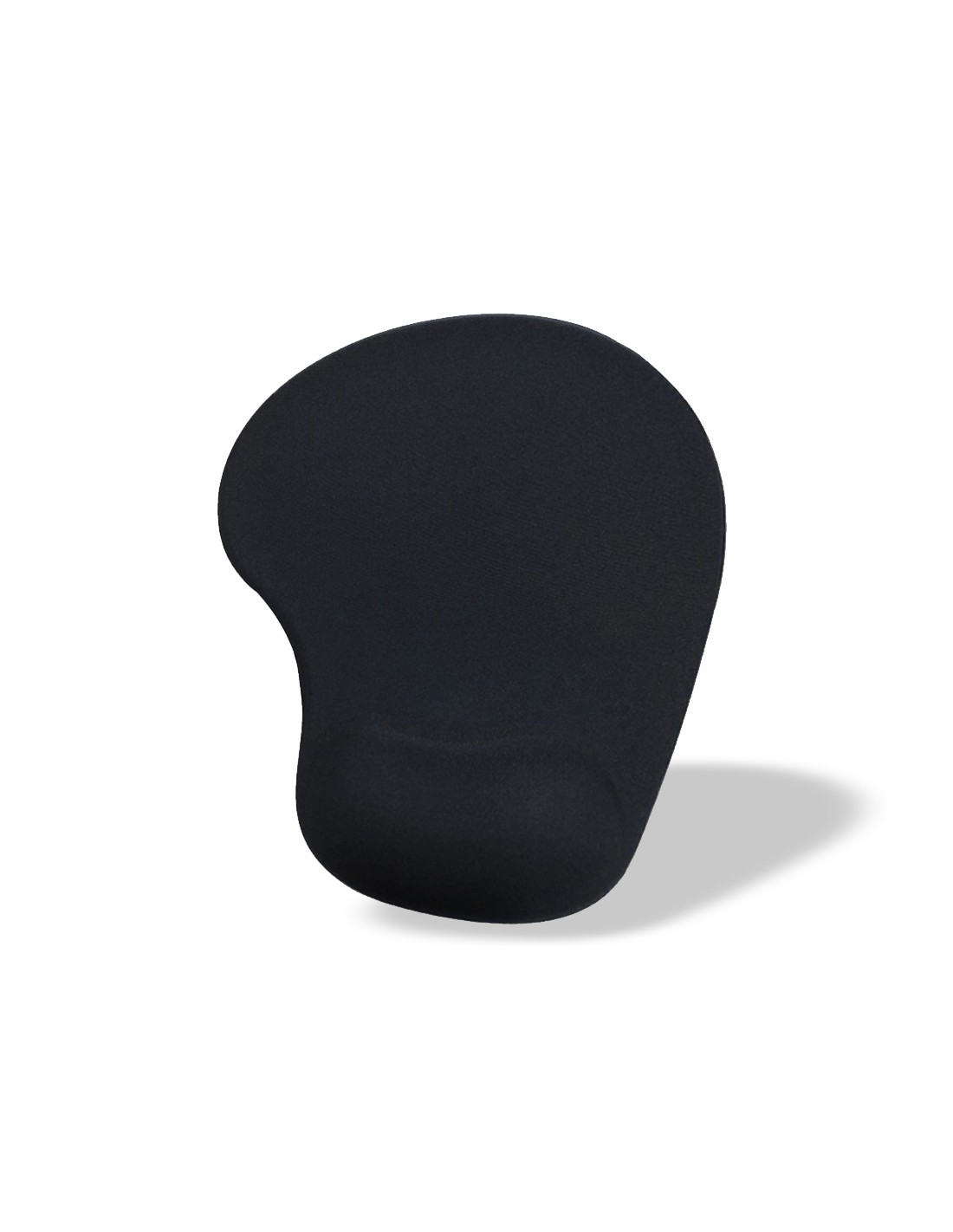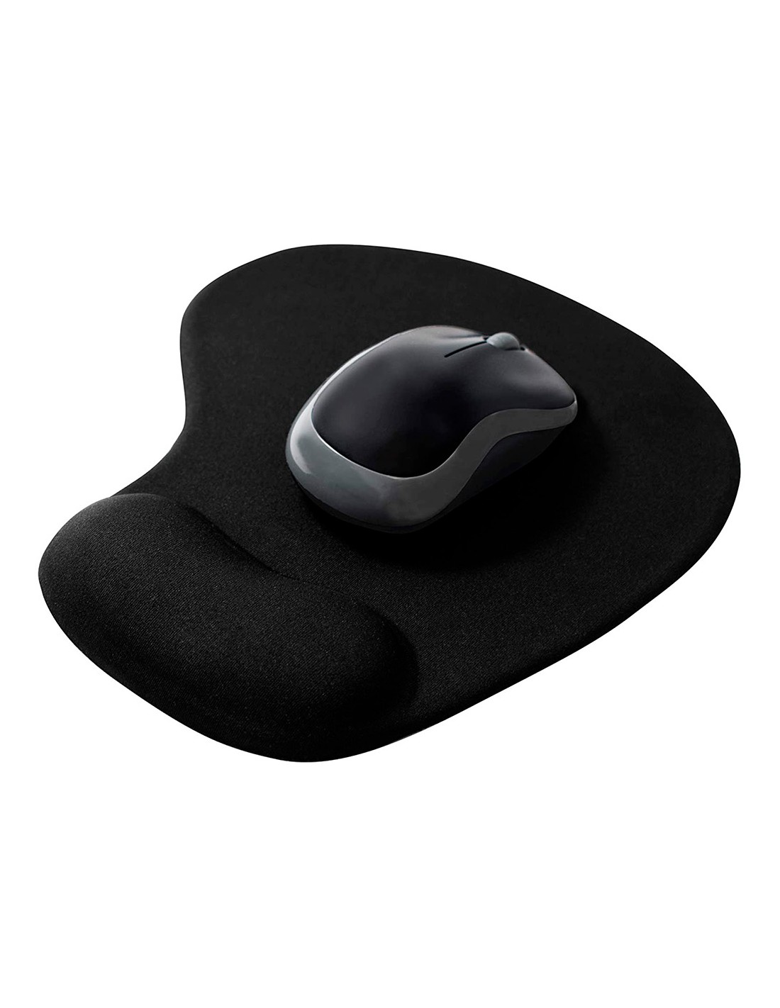 Alfombrilla de ratón con reposamuñecas, relleno de gel. Diseño ergonómico con superficie de tela y base antideslizante. Disponible en varios colores.