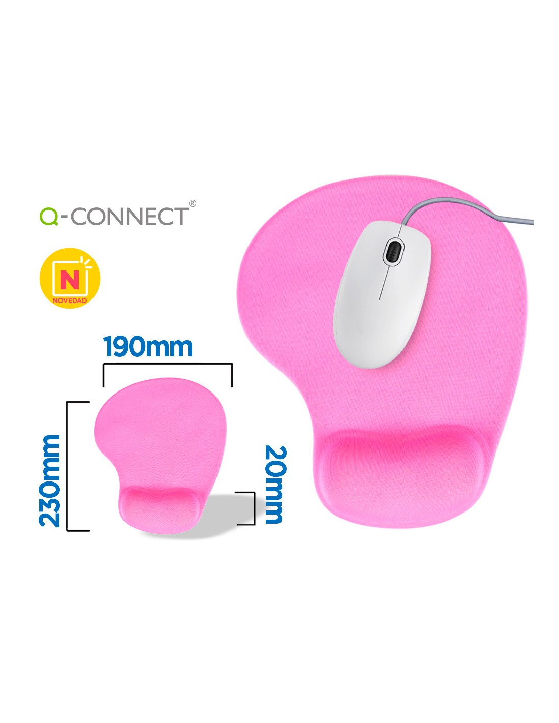 Alfombrilla para raton q-connect reposamuñecas de gel color rosa 190x230x20 mm