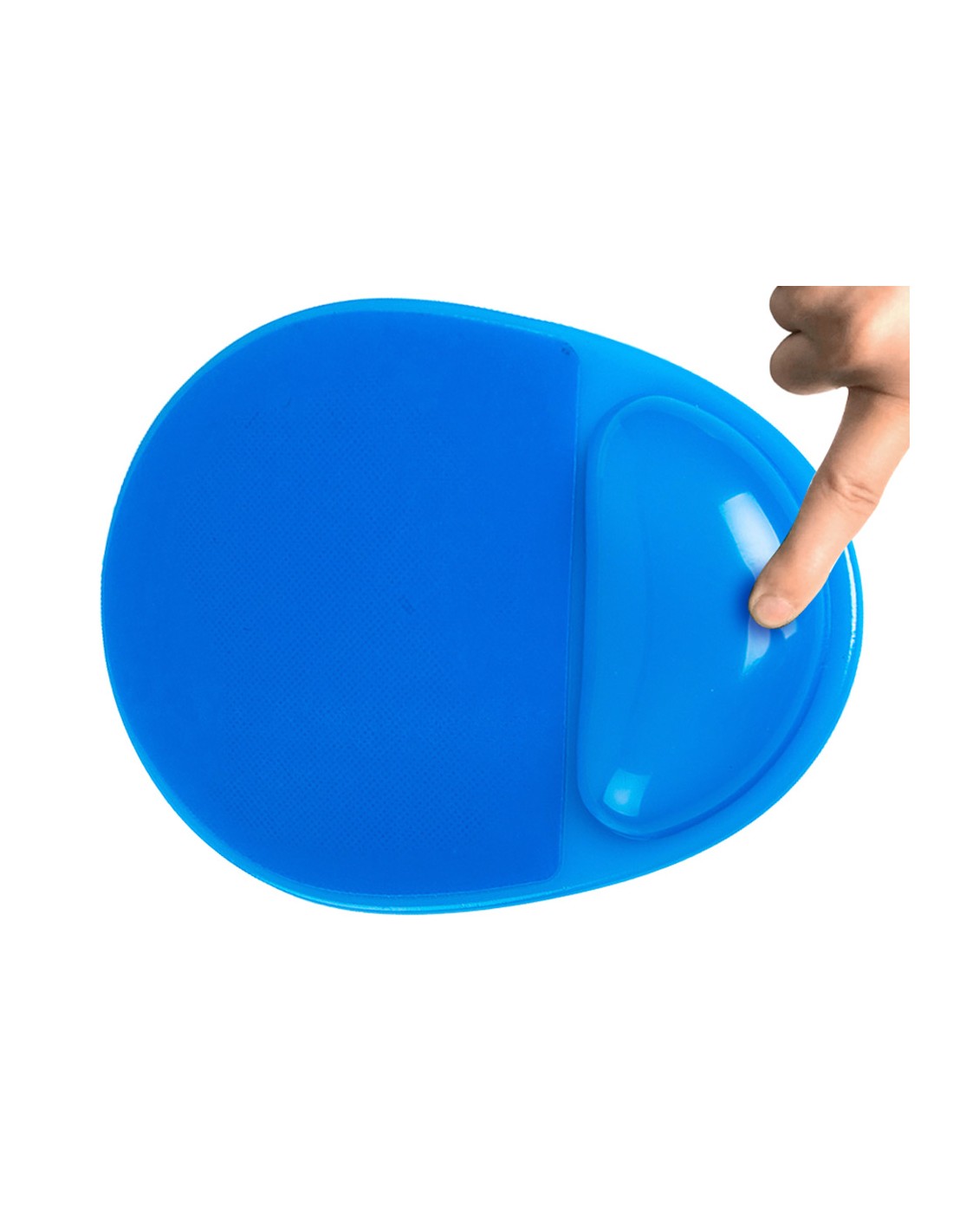 Alfombrilla de ratón de PVC con reposamuñecas de gel. Alfombrilla con superficie especialmente diseñada para mejorar el reconocimiento del movimiento del ratón óptico. Diseño ergonómico y base antideslizante. Colores vivos.