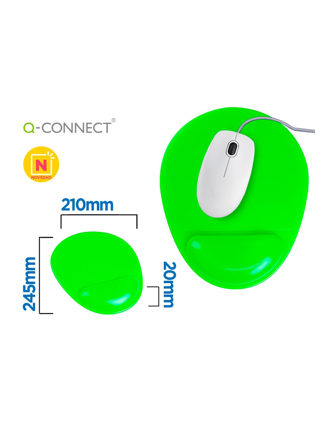 Alfombrilla para raton q-connect reposamuñecas de gel pvc color verde 210x245x20 mm