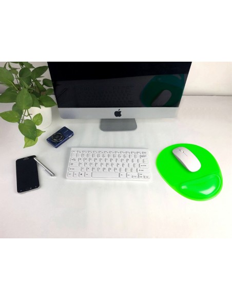 Alfombrilla de ratón de PVC con reposamuñecas de gel. Alfombrilla con superficie especialmente diseñada para mejorar el reconocimiento del movimiento del ratón óptico. Diseño ergonómico y base antideslizante. Colores vivos.