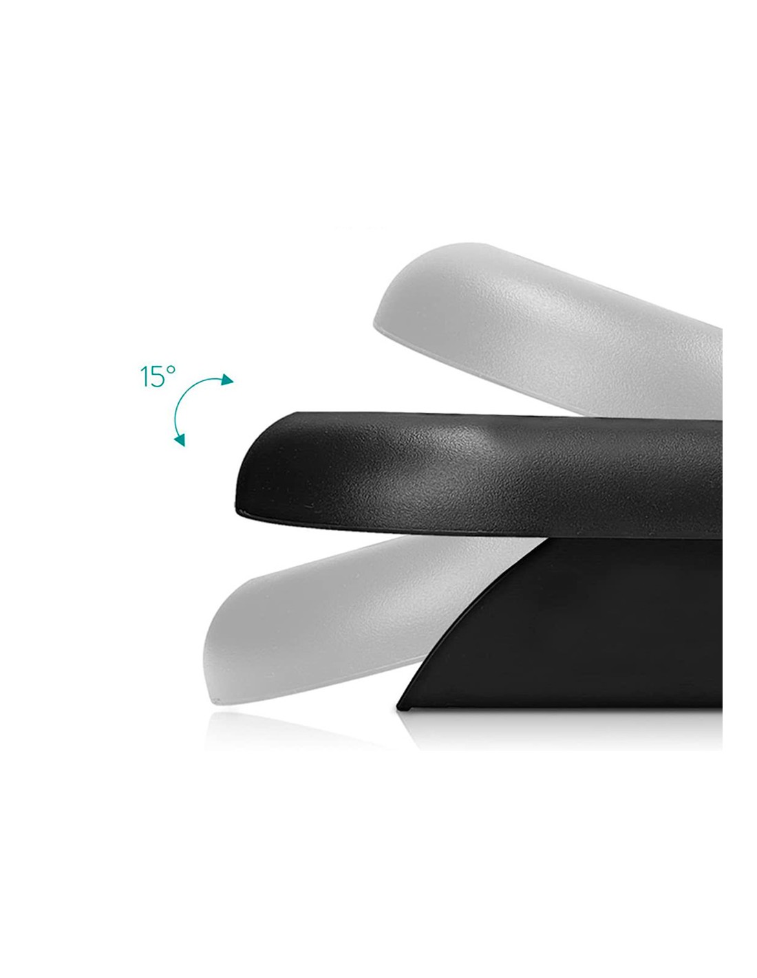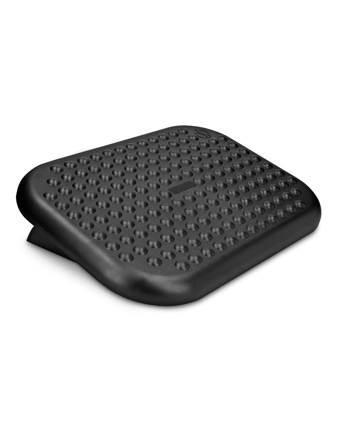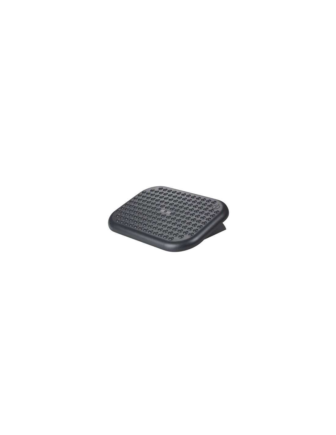 Reposapiés ajustable en altura. Base antideslizante. Superficie de efecto masaje que favorece la circulación de la sangre en las piernas. Ángulo 0-15°. Medidas 448 x 90 x 325 mm.