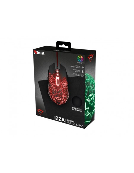 Pack alfombrilla + raton optico trust gaming gxt783 izza mouse & pad 2400 dpi 6 botones