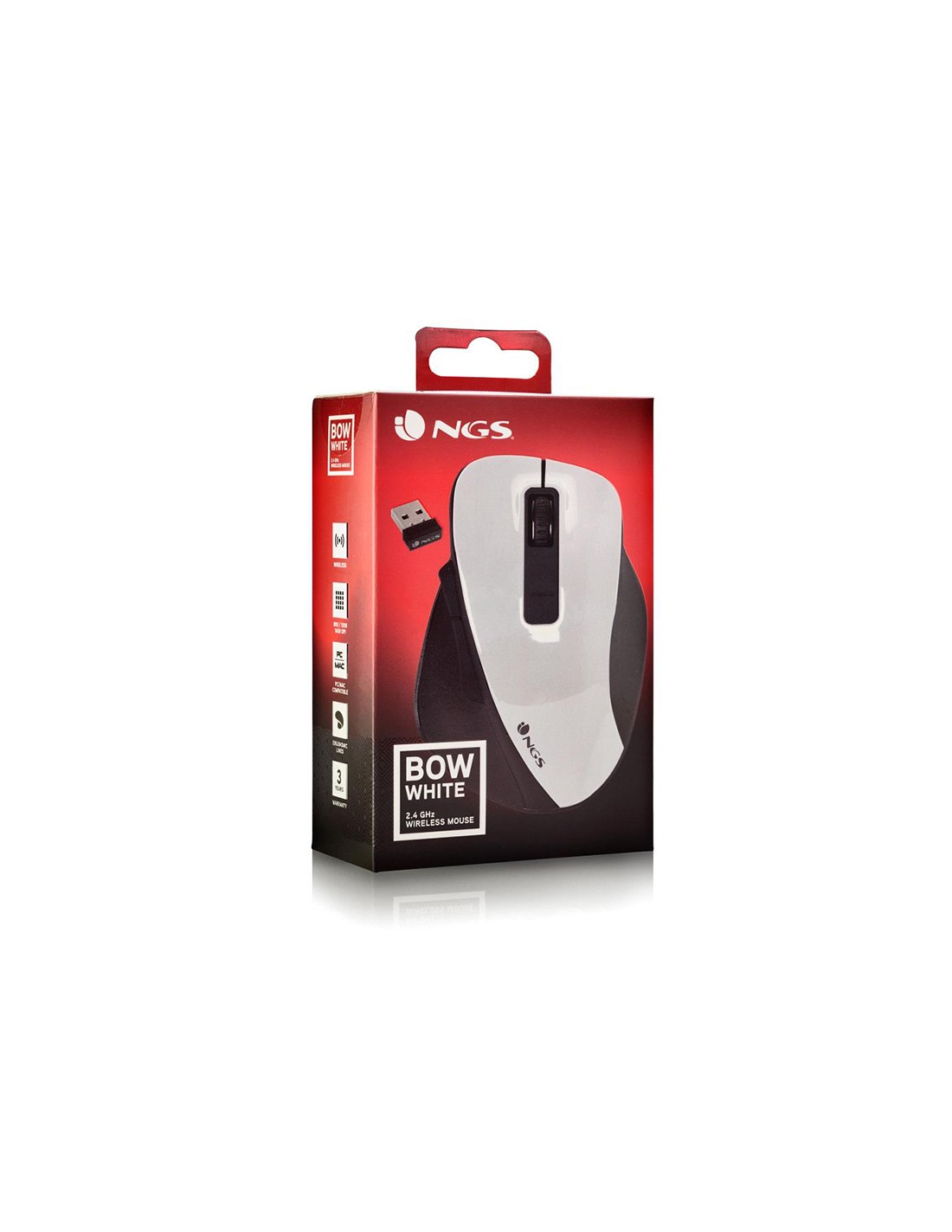 Raton ngs bow optico 800/1200/1600 dpi inalambrico 5 botones optico receptor 2.4 ghz blanco