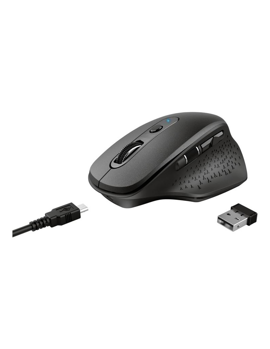 El ratón Trust Ozaa está diseñado pensando en la comodidad. Gracias al diseño ergonómico, trabajará todo el día manteniendo la mano en una posición cómoda. Tiene un total de seis botones, con los dos botones principales silenciosos para que no moleste a nadie con su arduo trabajo. Hay una rueda de desplazamiento horizontal, una batería recargable y es inalámbrica con un alcance de hasta 10 metros. Este es realmente un mouse premium. Color negro.