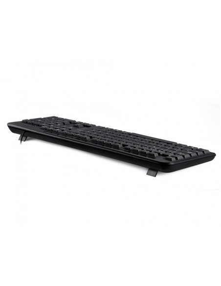Teclado con cable compatible con Windows 95/ 98/ NT/ ME/ 2000/ XP/ 7/ 8 / VISTA. Color negro. Medidas 465 x 165 x 28 mm. Peso 0,43 kg.