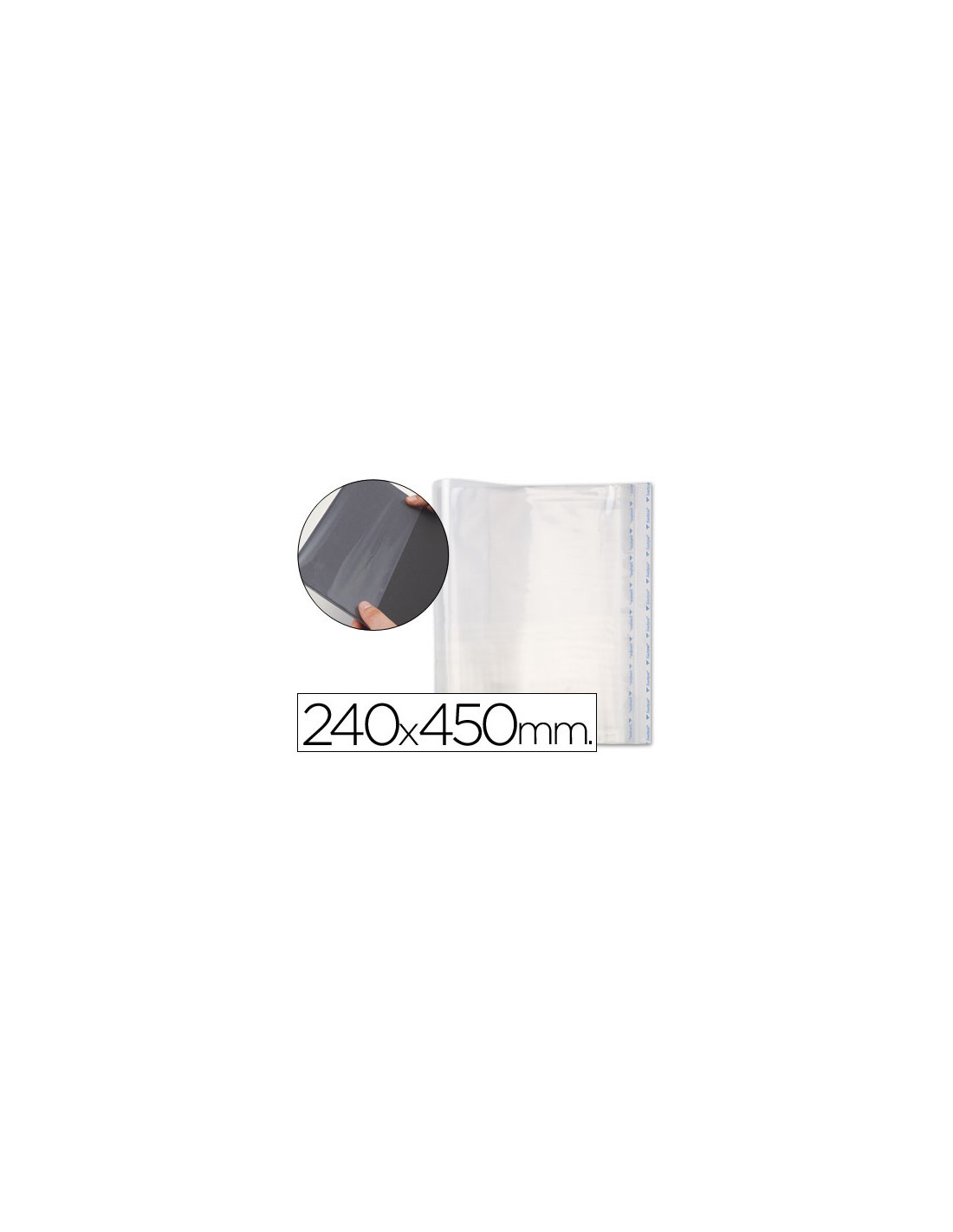 Forralibros de polipropileno de 80 micras con sistema de ajuste adhesivo. Presentación en bolsa. Las medidas de las fundas son abiertas.