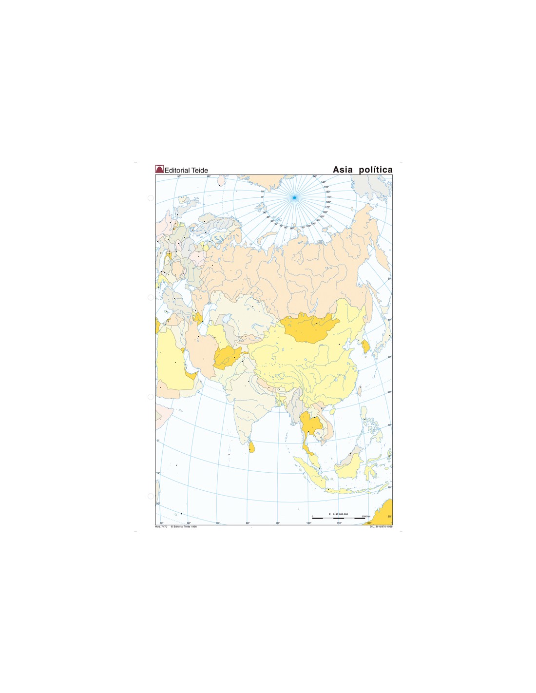 Mapa mudo color din a4 asia politico
