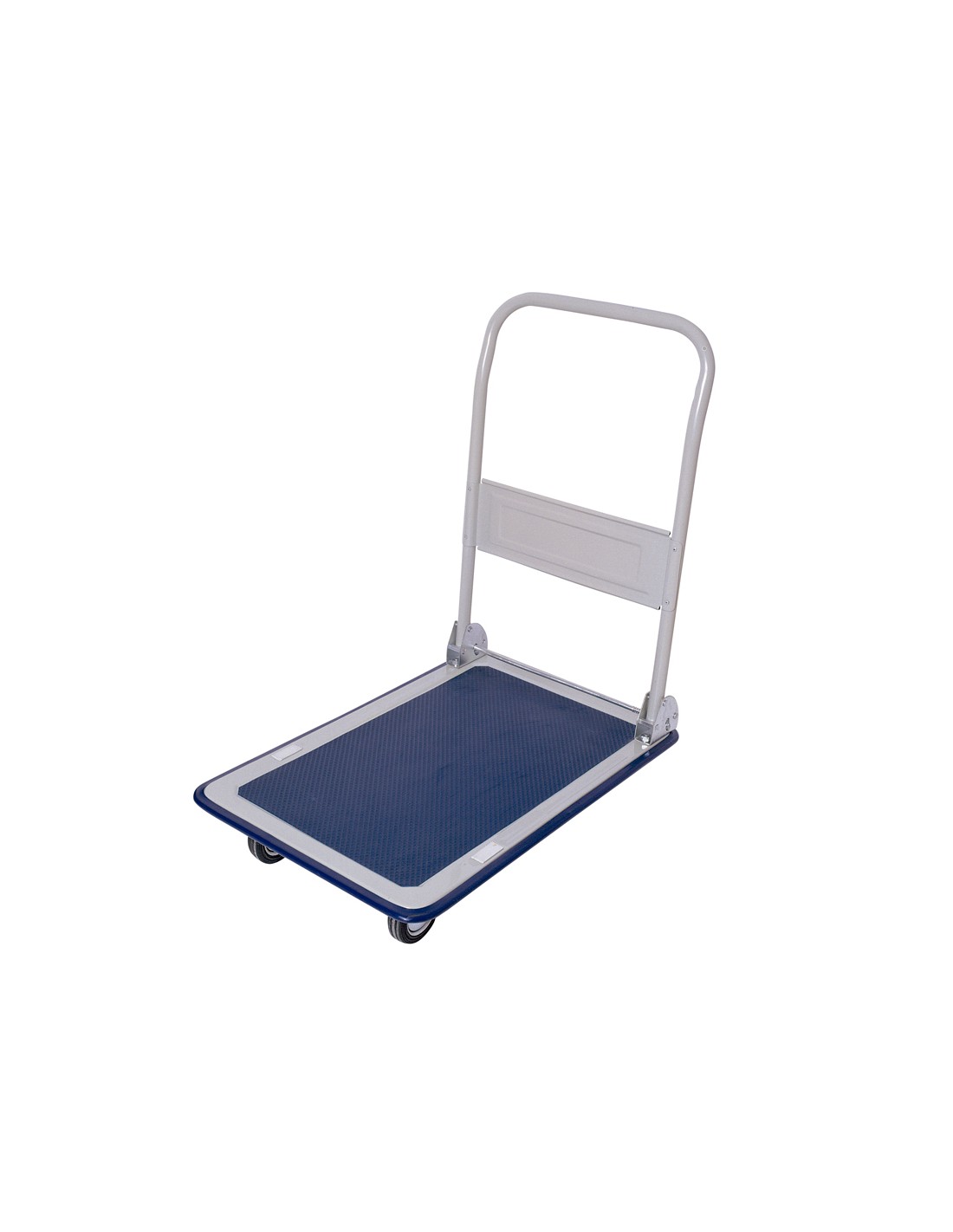 Carro plegable de transporte para paquetería. Con asa abatible y 4 ruedas. Plataforma con revestimiento antideslizante.