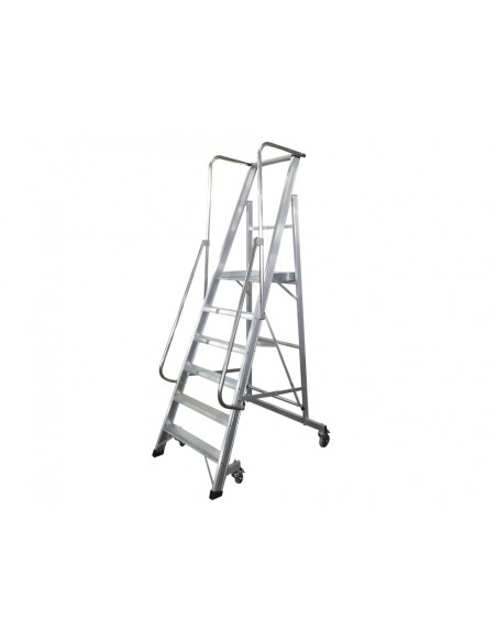 Escalera movil ktl de aluminio con plataforma y guardacuerpos plegable 6 peldaños serie 2xl-s