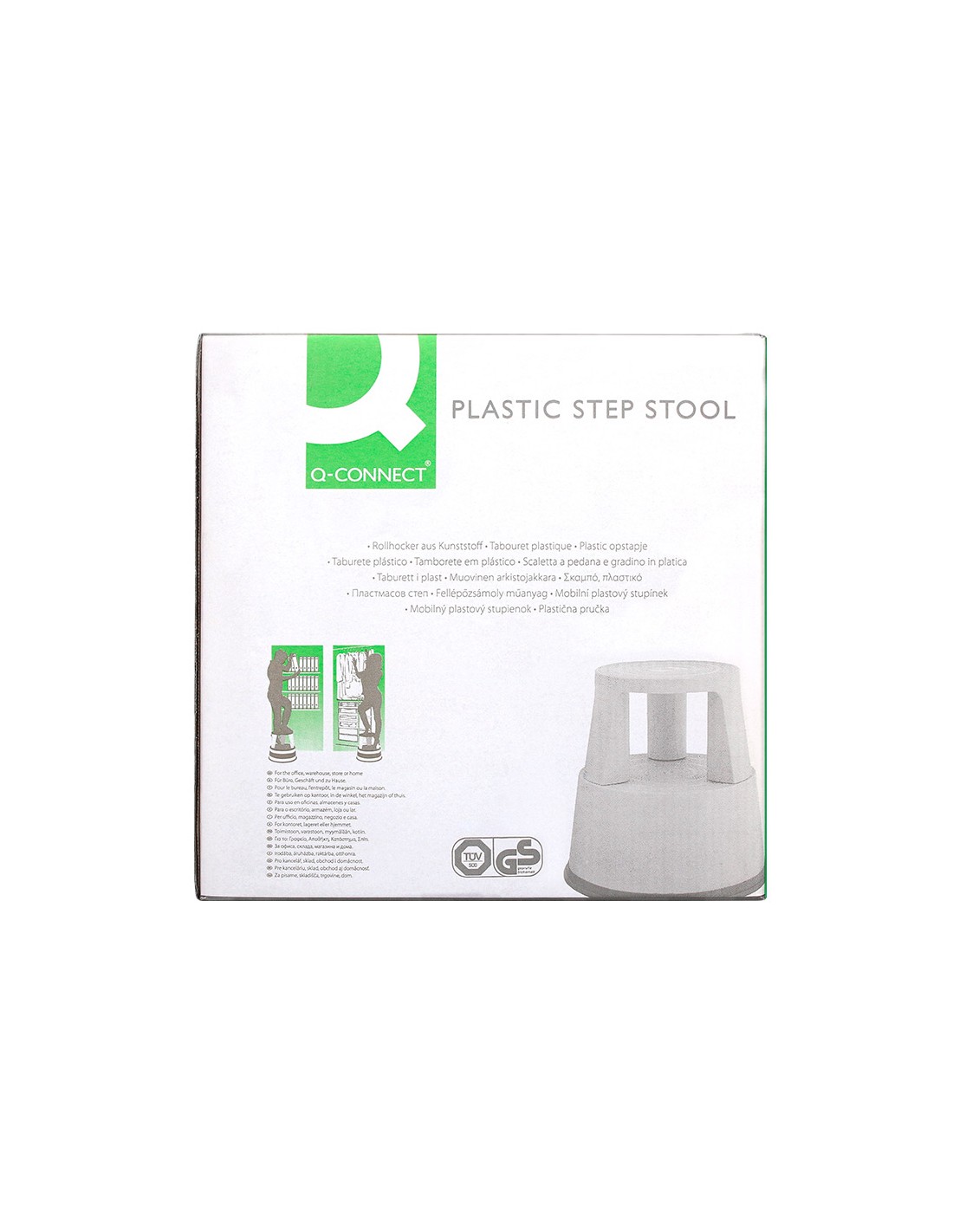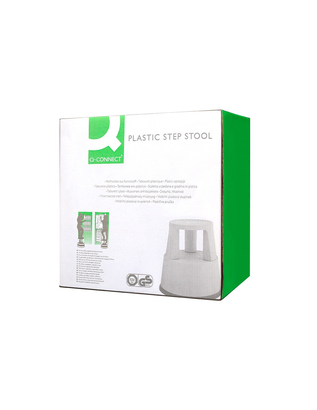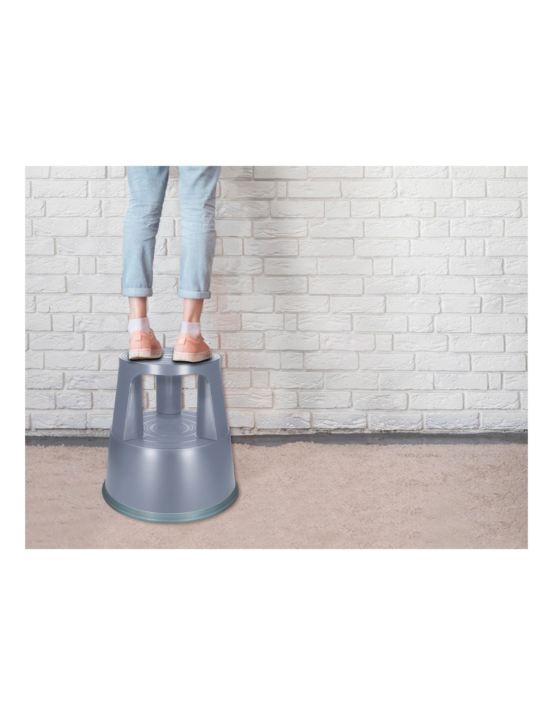 Taburete q-connect ruedas retractiles tres ruedas dos niveles color gris
