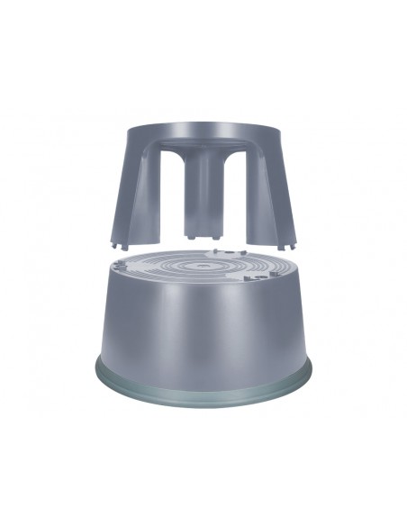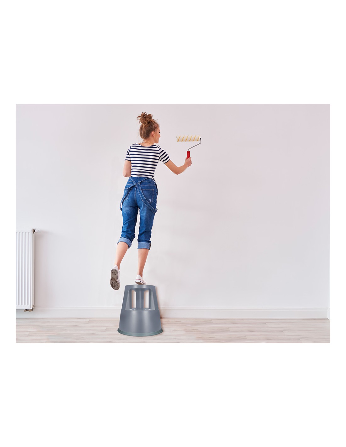 Taburete altamente resistente y firme. Fabricado en ABS. Con ruedas de gomas retráctiles que lo hace muy fácil de transportar y firme a la vez, al permanecer fijo en el suelo. Con dos niveles. Soporta hasta 150 kg. Medidas Ø 43,5 x 43 x Ø 28 cm.