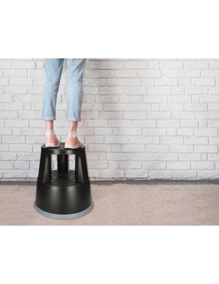 Taburete q-connect ruedas retractiles tres ruedas dos niveles color negro