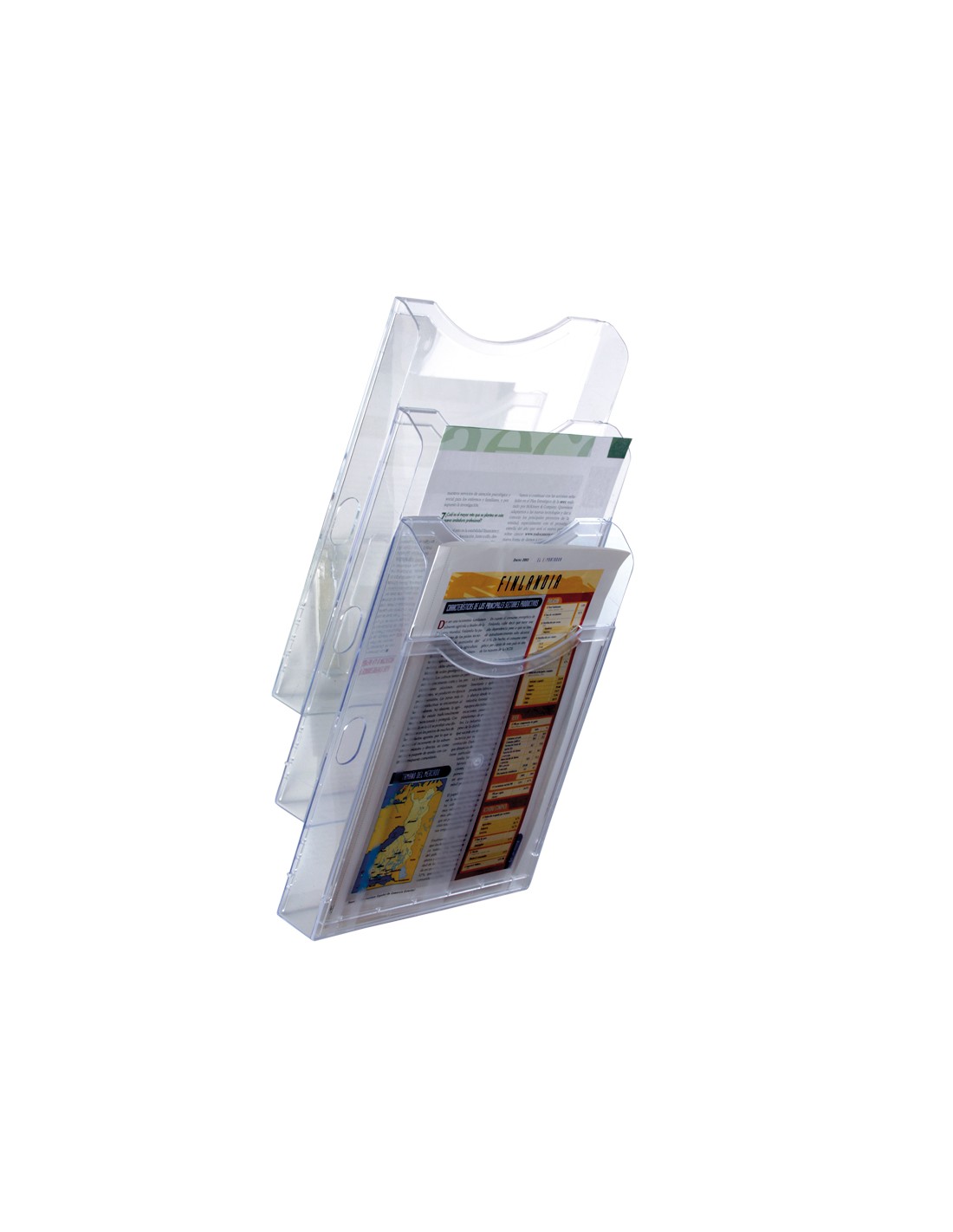 Expositor mural archivo 2000 de pared 3 bandejas din a4 transparente 155x239x445 mm separadores moviles ajustables