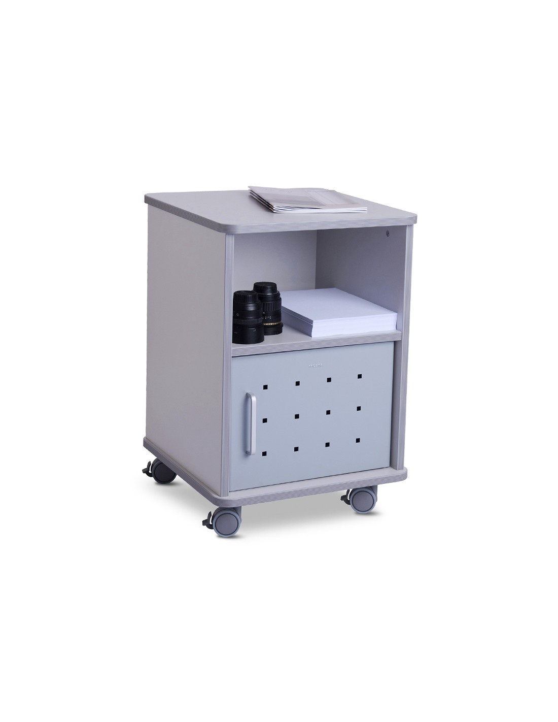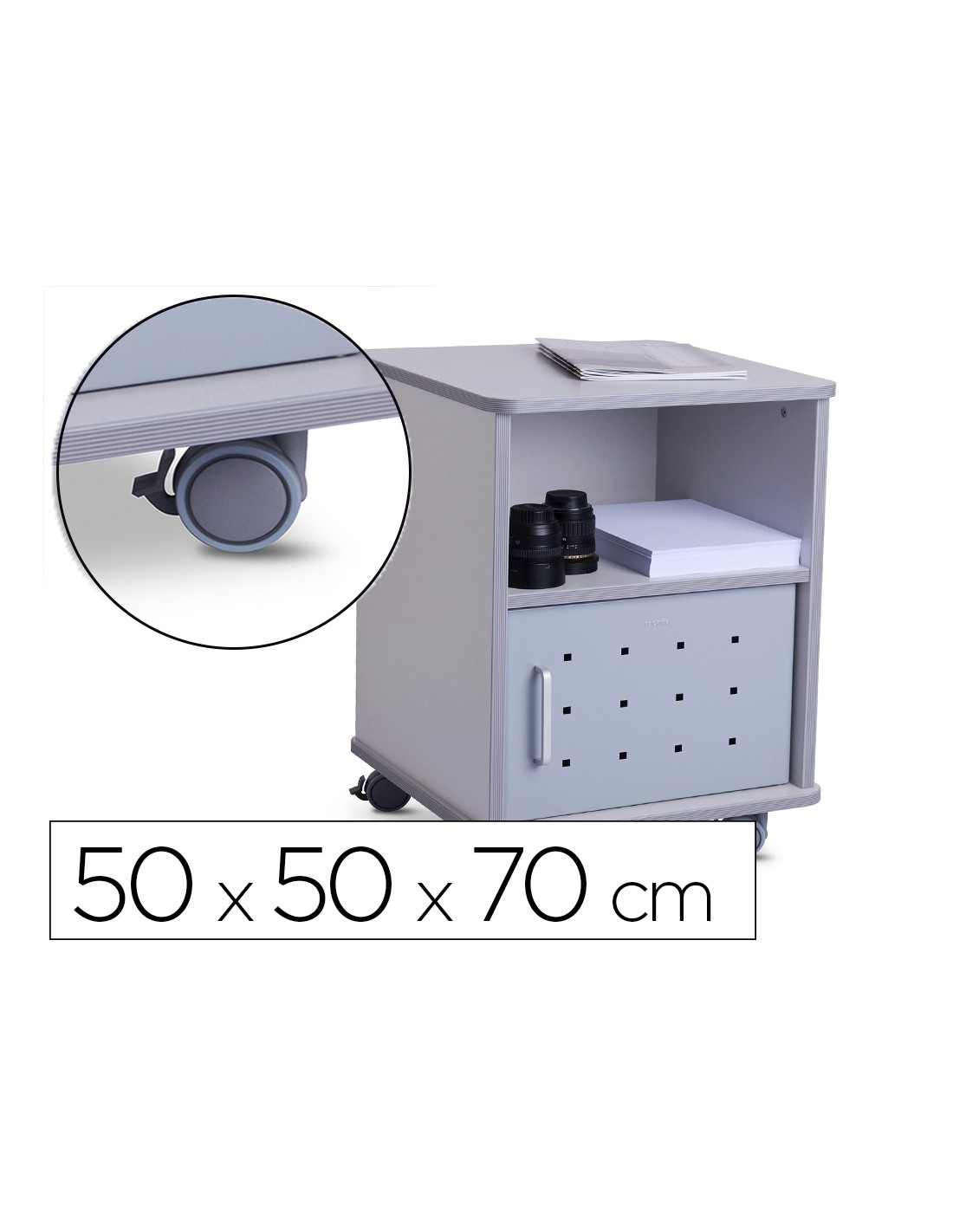 Mesa auxiliar rocada rd-4030 para fotocopiadoras/fax melamina con ruedas y puerta metalica color gris 50x50x70