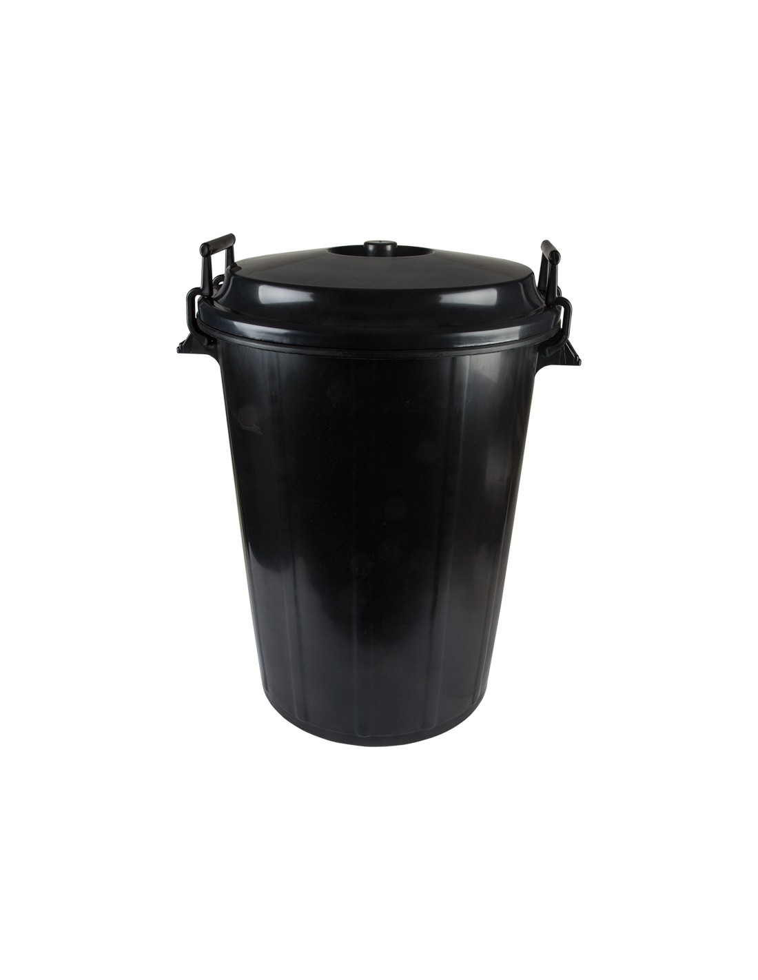 Fabricado en plástico resistente. 2 asas para un fácil transporte. Con cierres a ambos lados para ajustar la tapa. Color negro. Capacidad 100 litros. Para bolsas de basura de 85 x 105 cm. Medidas 50 x 69,5 cm.