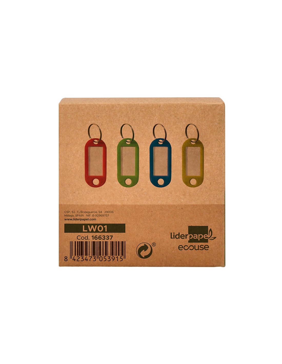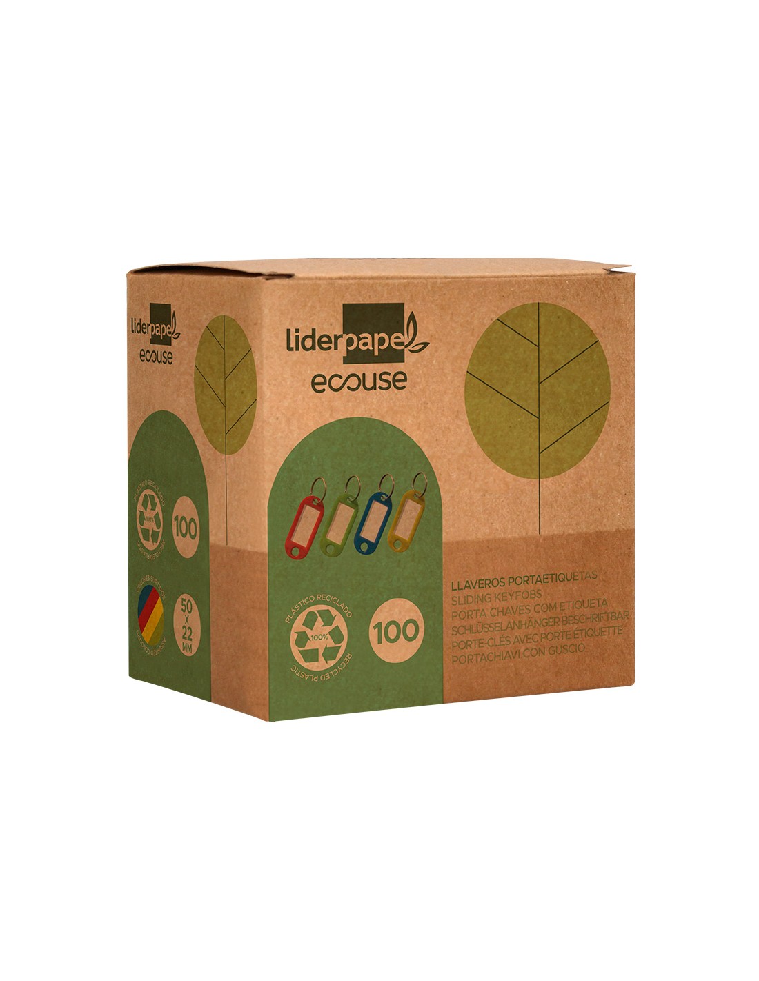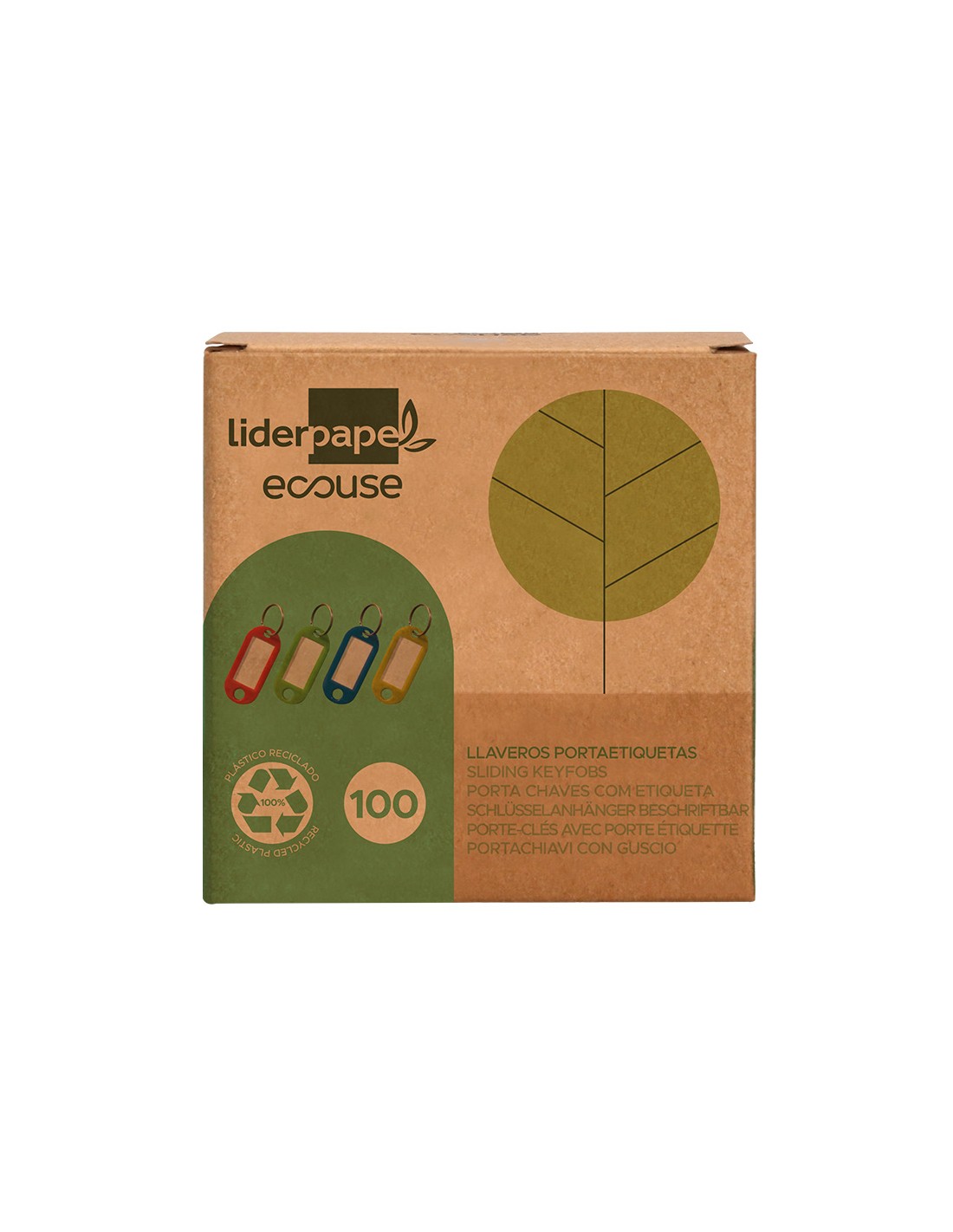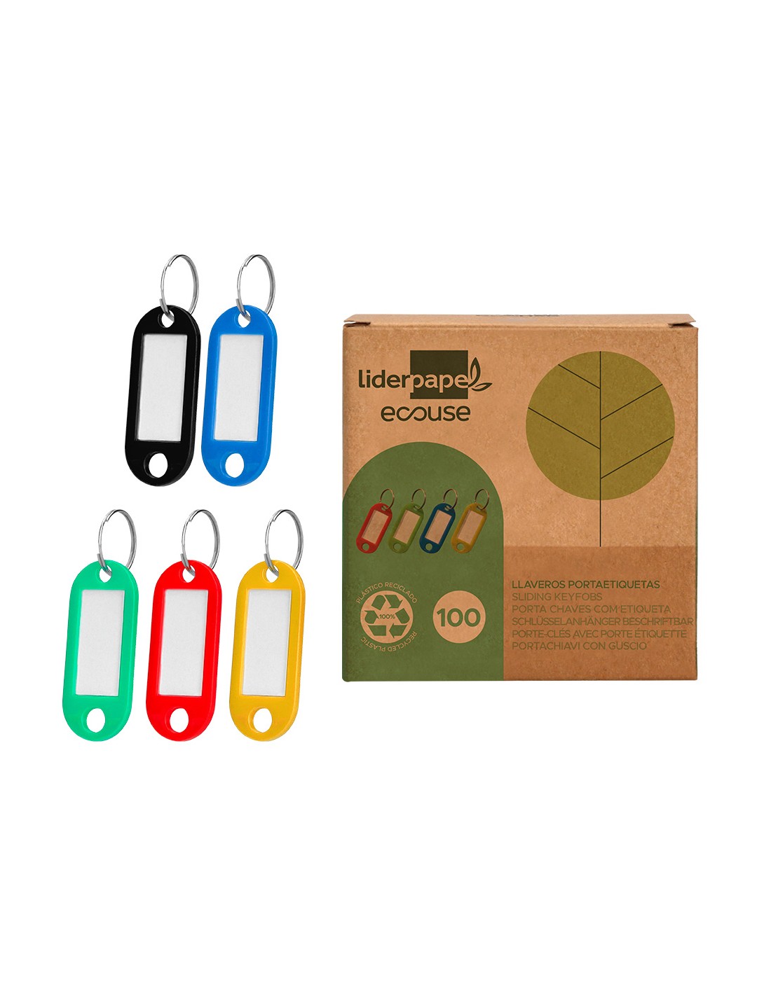 Llavero portaetiquetas liderpapel ecouse fabricado en plastico reciclado caja de 100 unidades