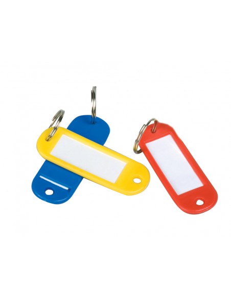 Llaveros con útiles portaetiquetas para indicar la información de la llave. Fabricado en plástico. Colores surtidos. Medidas 58 x 20 mm. La caja de 6 unidades.
