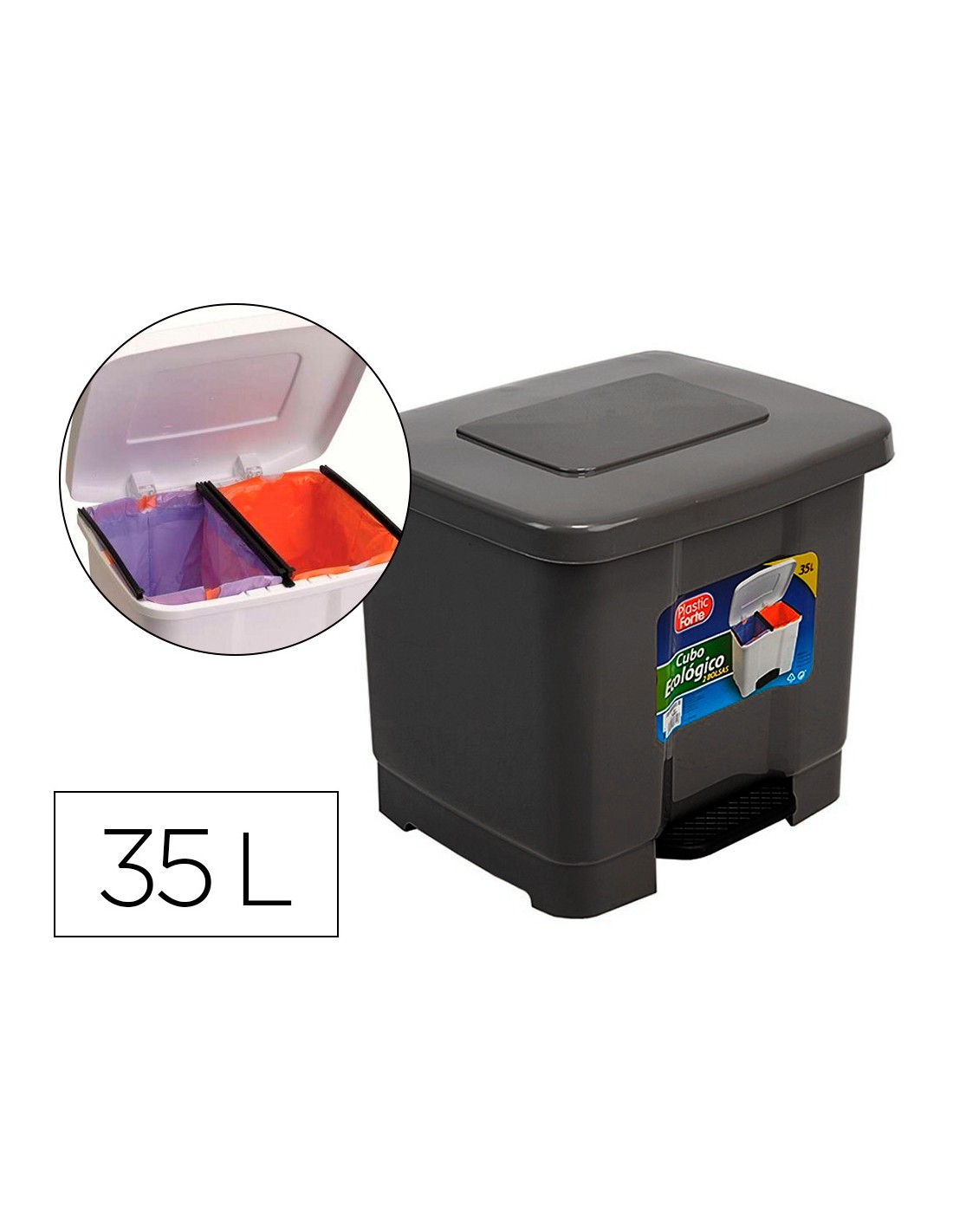 PLASTICFORTEPapelera contenedor plasticforte plastico con pedal 2 compartimentos 35 litros gris oscuro