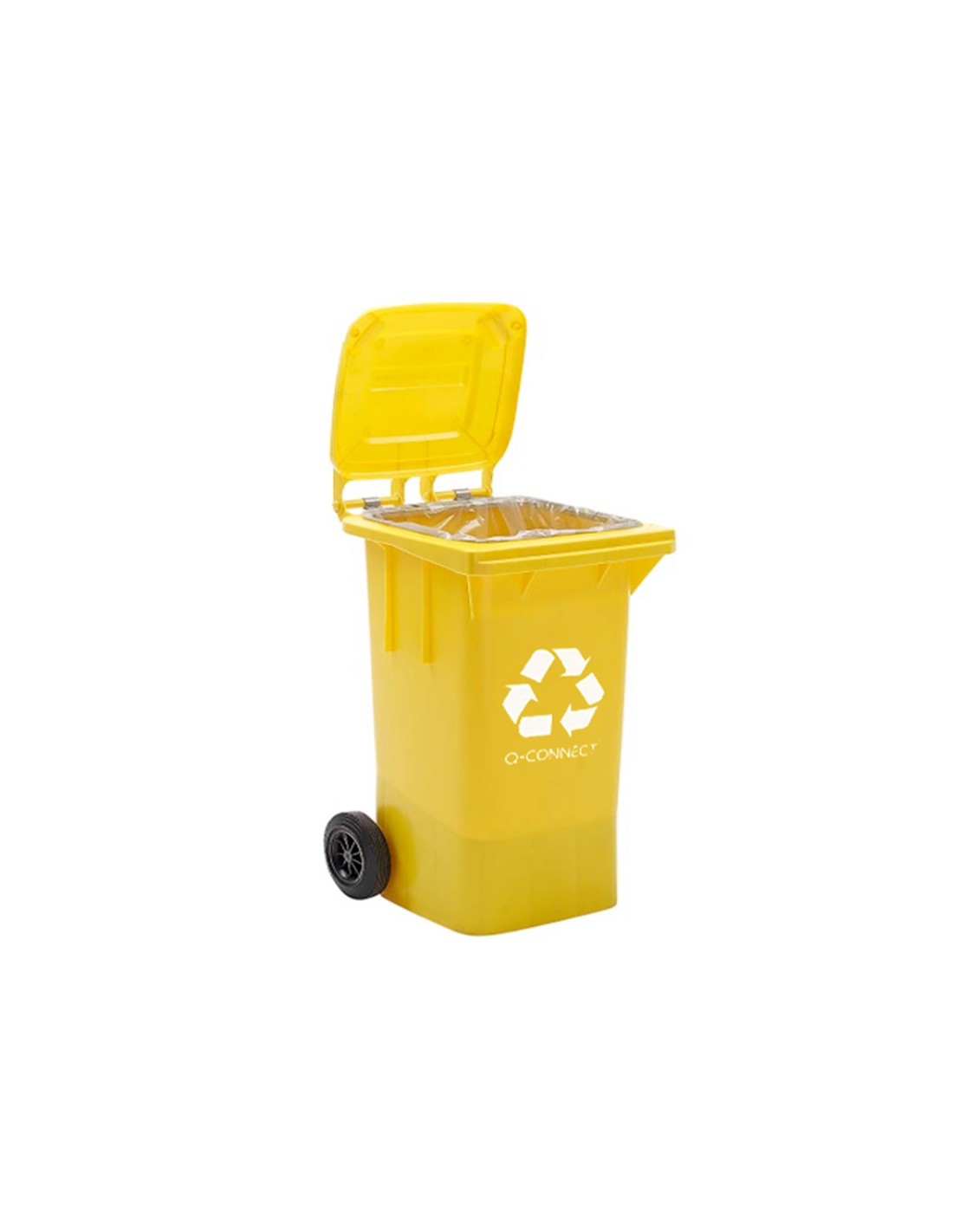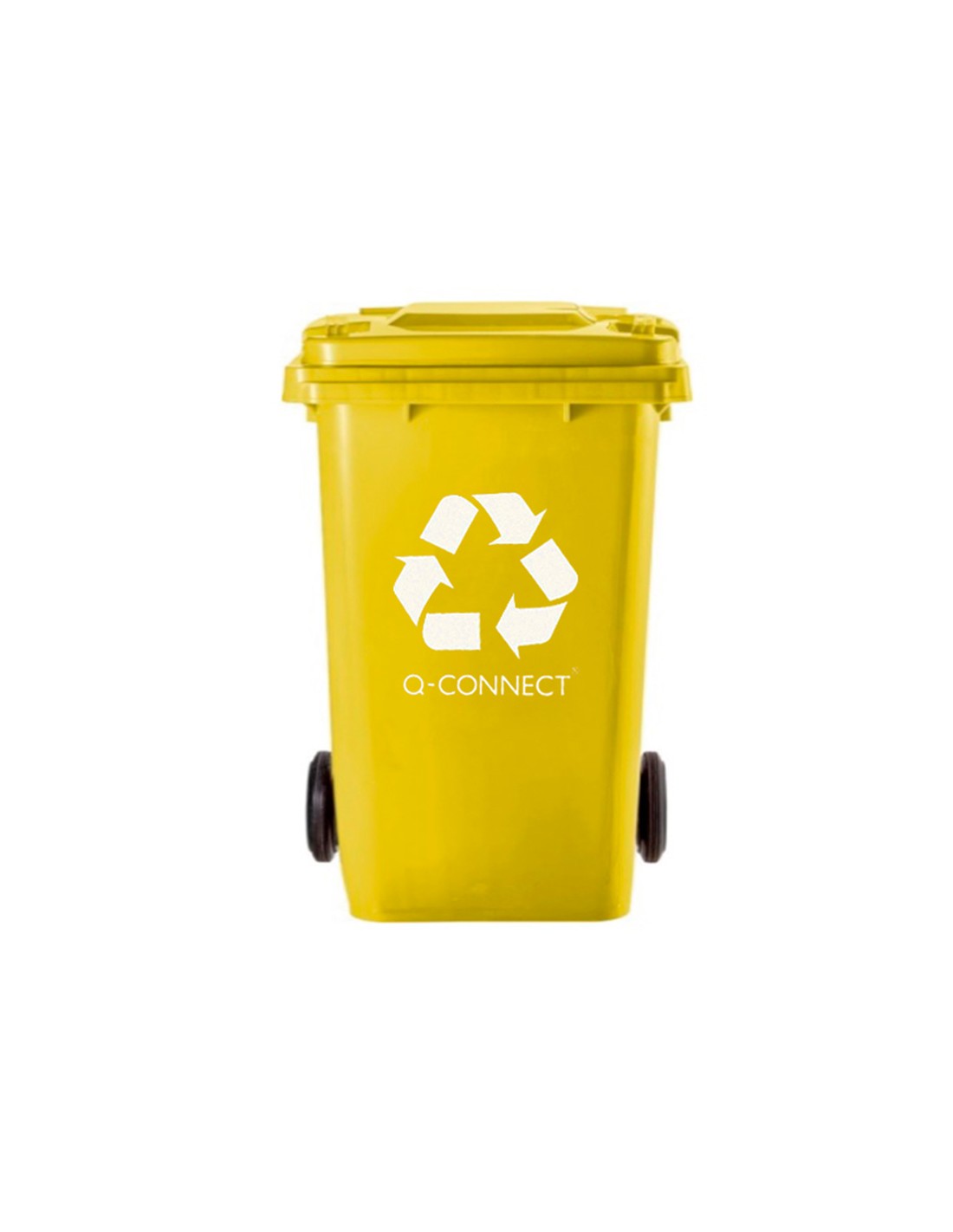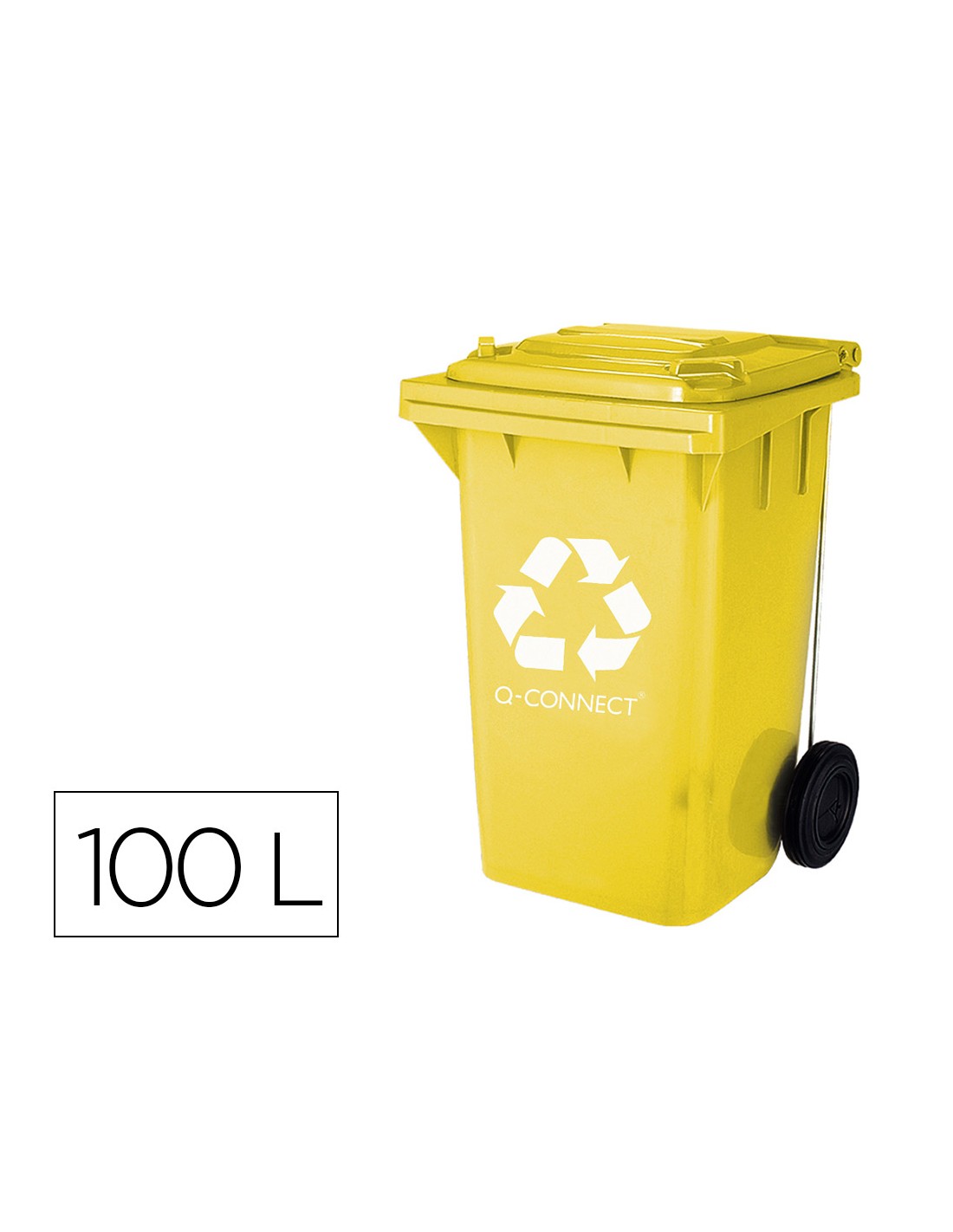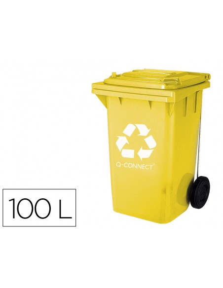 Papelera contenedor q-connect plastico amarillo para plasticos y envases metalicos 100l con tapa y ruedas 750x470x370 mm