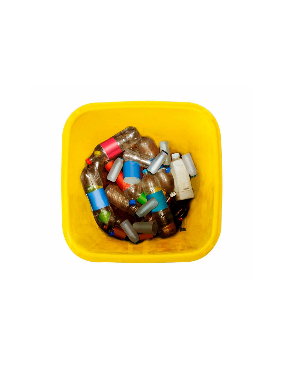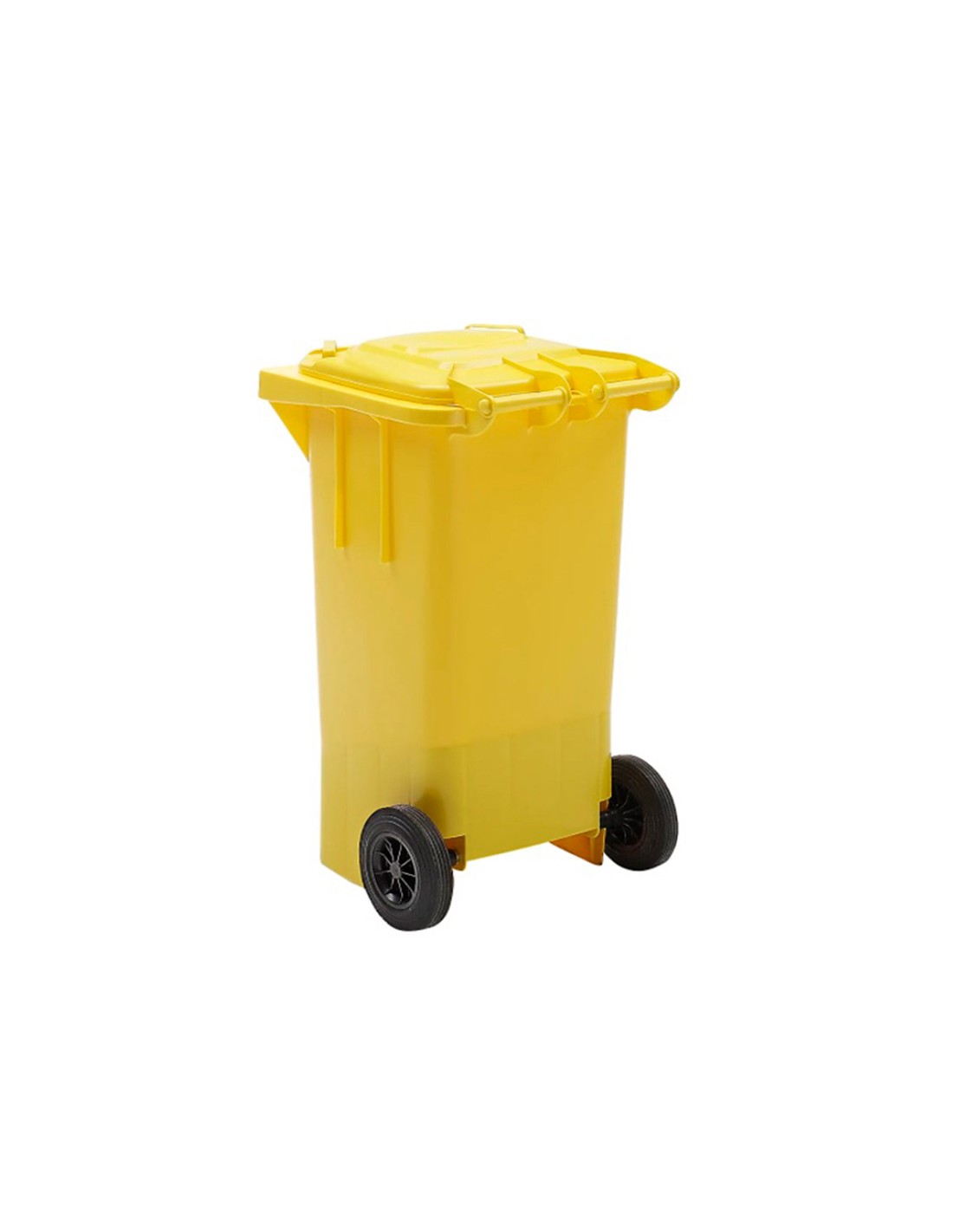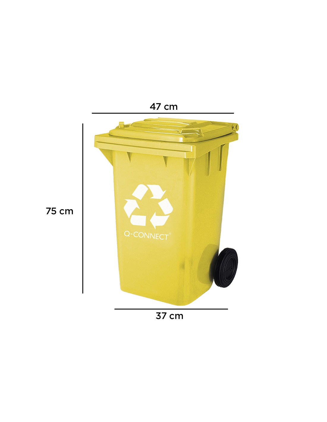 Papelera contenedor q-connect plastico amarillo para plasticos y envases metalicos 100l con tapa y ruedas 750x470x370 mm