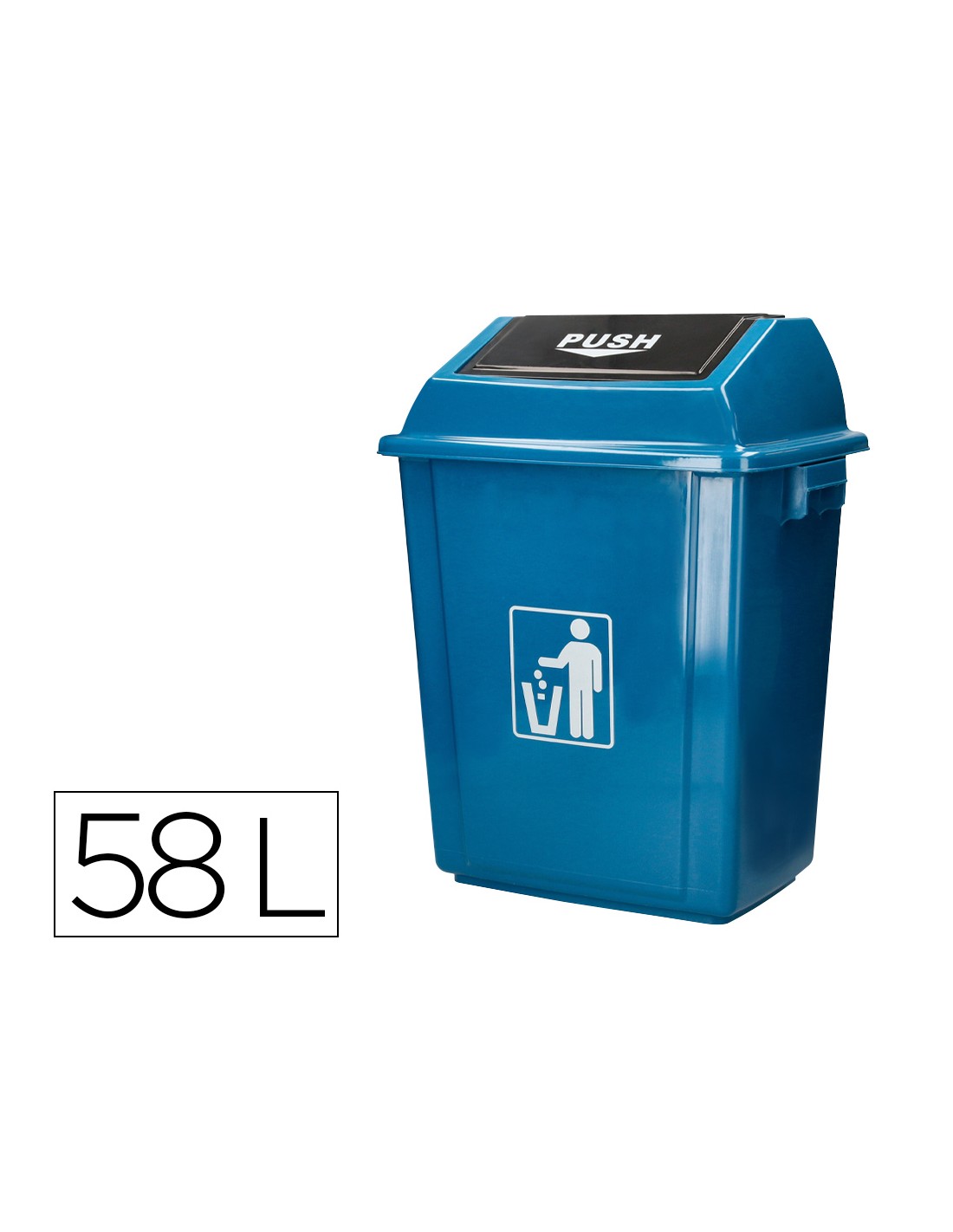 Papelera contenedor q-connect plastico con tapa de balancin 58 litros azul 470x330x760 mm