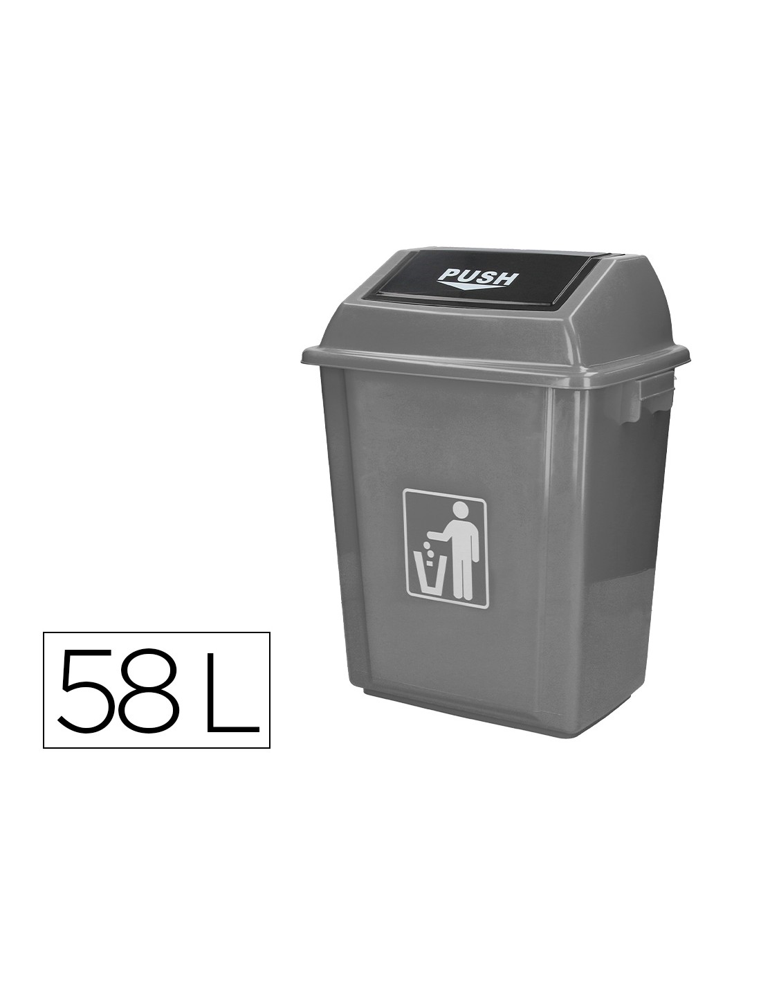 Papelera contenedor q-connect plastico con tapa de balancin 58 litros gris 470x330x760 mm