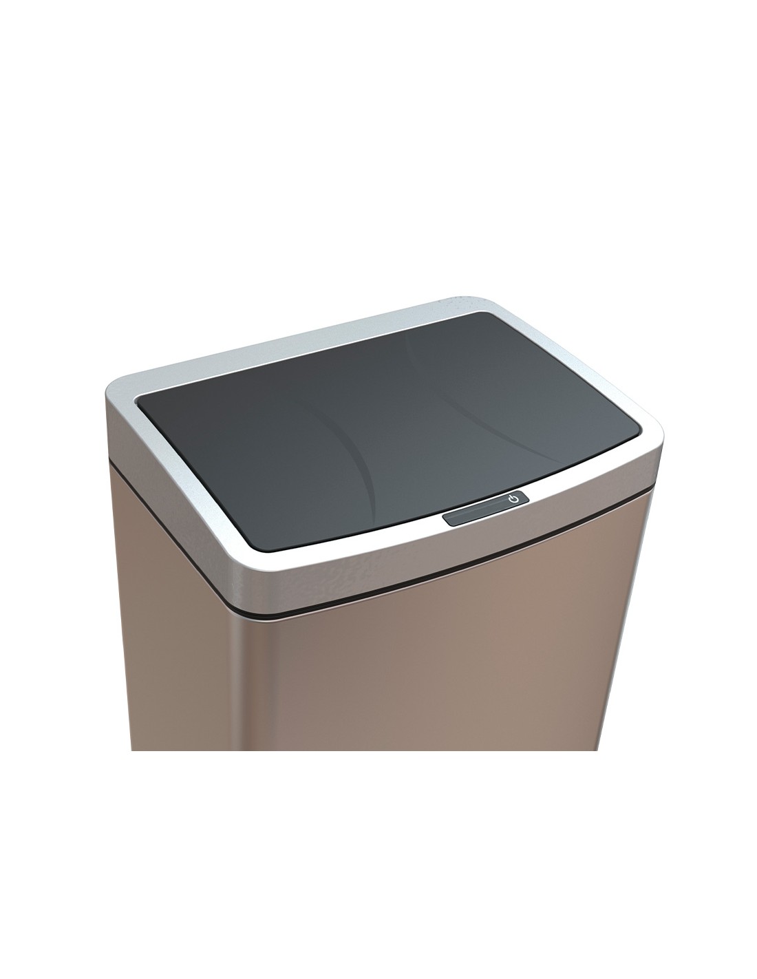 Papelera fabricada en metal con acabado espejo. Con sistema de apertura automática que detecta los movimientos. Resistente, higiénico y seguro. Funciona con pilas. Pilas no incluidas. Ideal para oficinas y restaurantes.