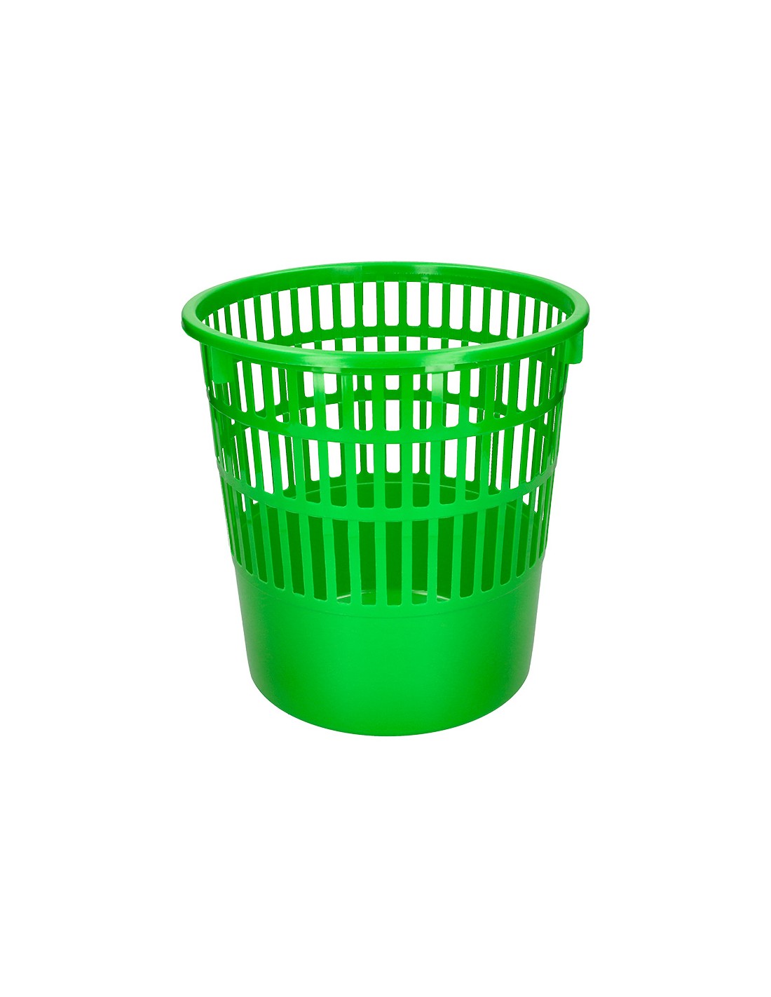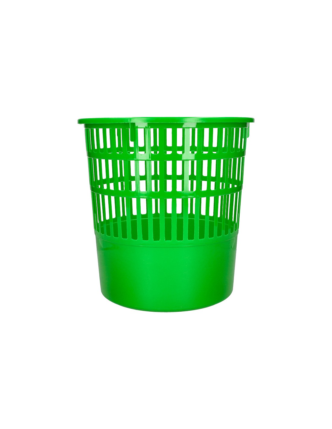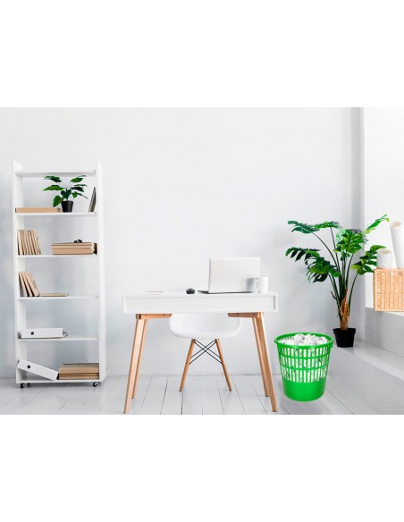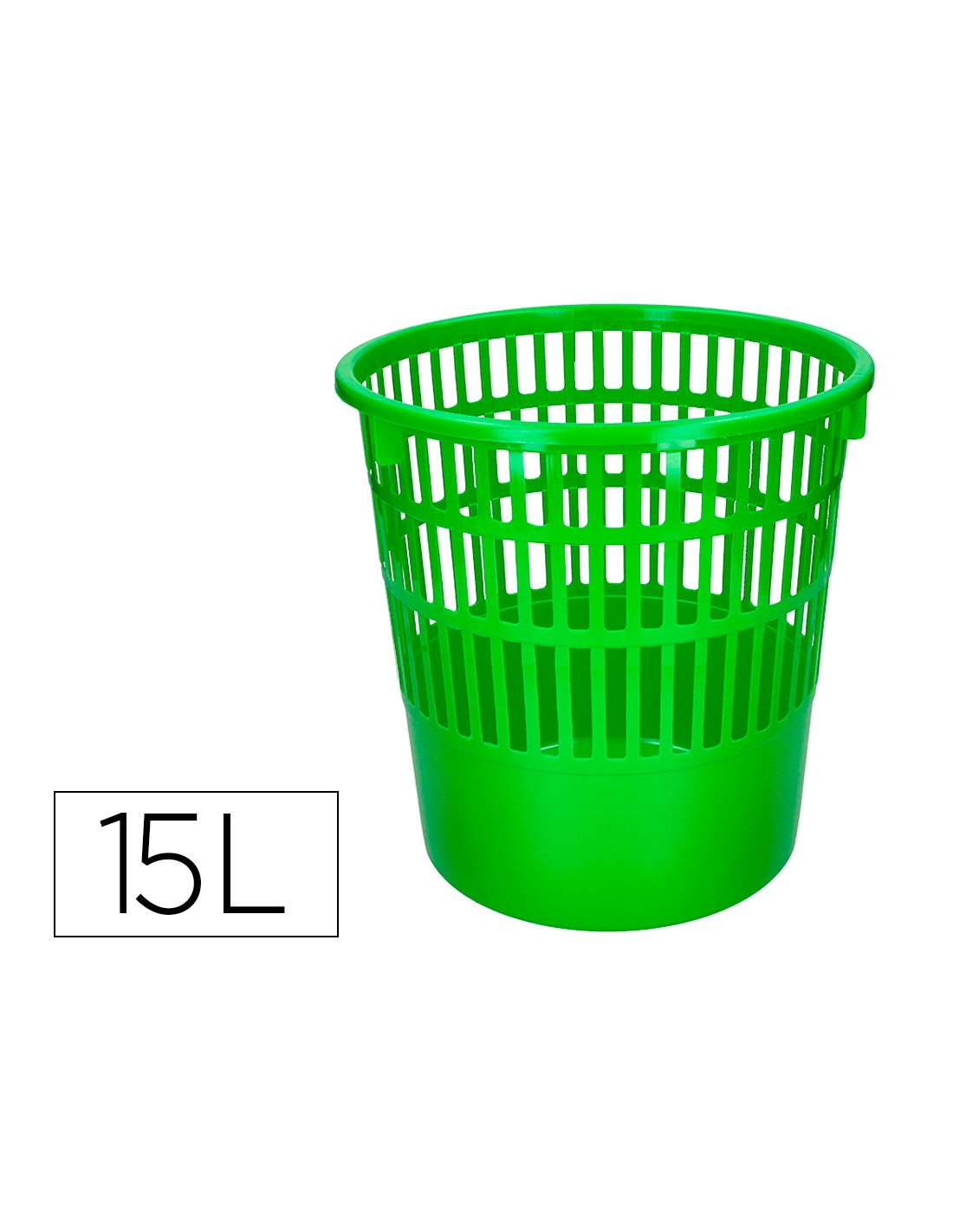 Papelera de rejilla muy resistente fabricada en poliestireno. Capacidad 15 litros. Color verde. Medidas ø 28,5 x 29 cm.