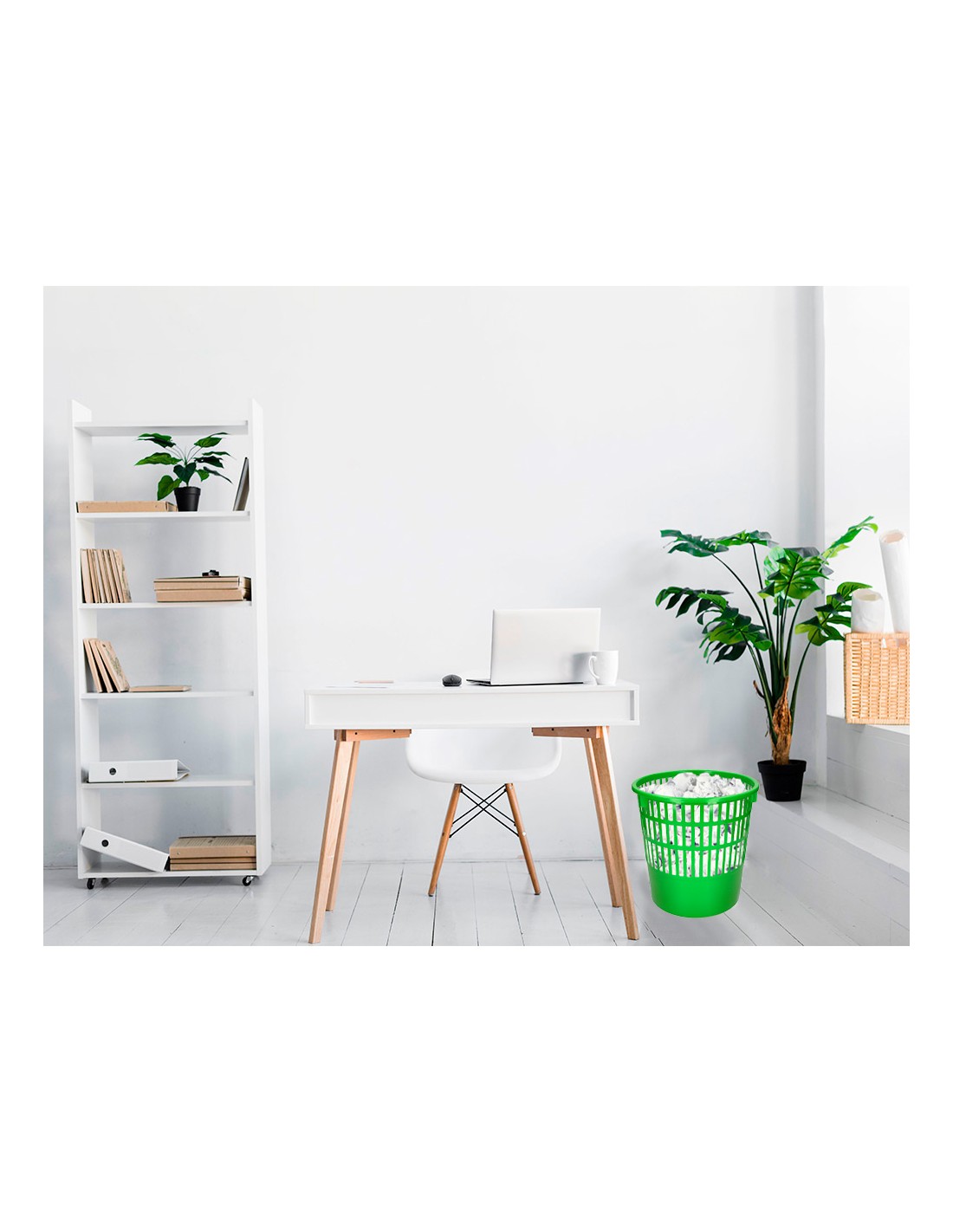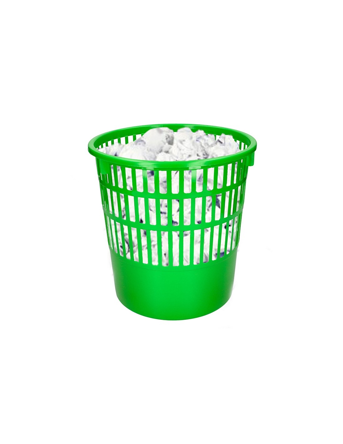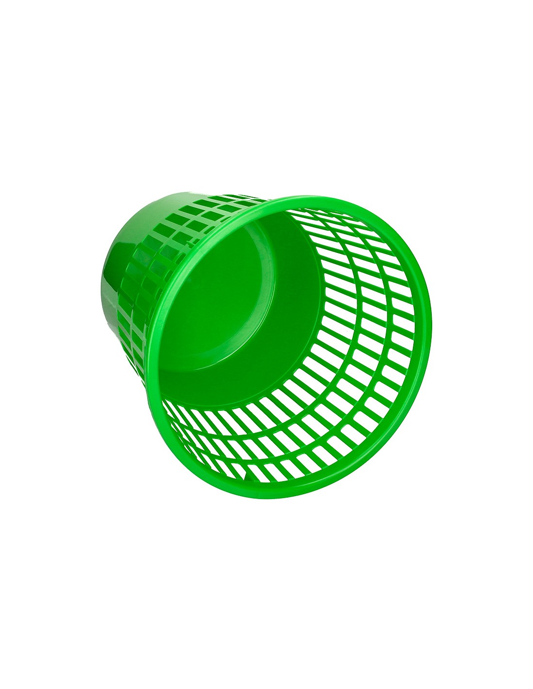 Papelera de rejilla muy resistente fabricada en poliestireno. Capacidad 15 litros. Color verde. Medidas ø 28,5 x 29 cm.