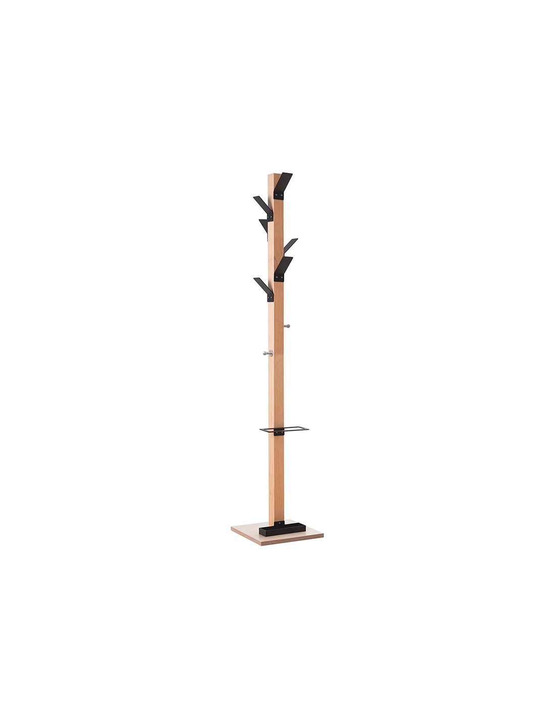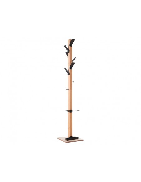 Perchero madera paperflow haya 8 colgadores con paraguero negro altura 180 cm