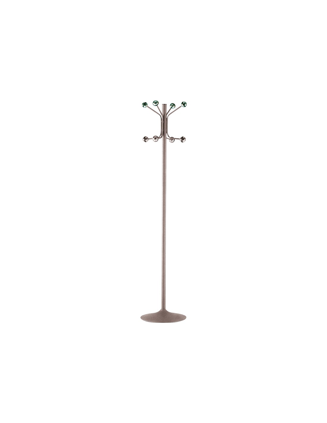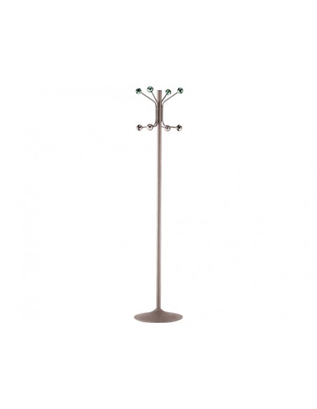 Perchero metálico con 8 colgadores, con acabado redondeado para proteger las prendas de ropa. Medidas Ø 38 x 177 cm.