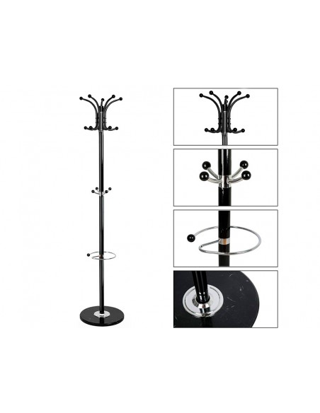 Perchero metalico q-connect negro de pie 10 colgadores y paraguero 174x40 cm