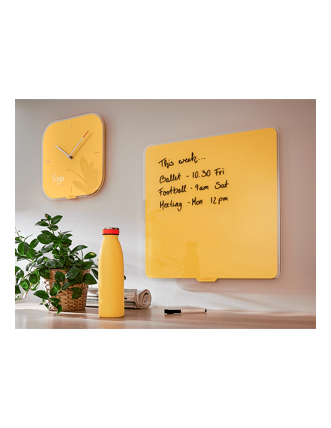 Siéntete como en casa donde sea que te lleve tu día de trabajo con la gama Cosy de Leitz. Con su diseño minimalista y atractivos colores con acabado mate, puedes añadir estilo y color a tu espacio de trabajo. El reloj de pared de cristal Cosy es ideal para oficinas, áreas de lectura y dormitorios para que no te moleste el sonido del reloj. Este reloj moderno de calidad premium es el complemento perfecto para tu hogar u oficina para garantizar que te mantengas relajado y productivo durante todo el día. Incluye un rotulador de borrado en seco para escribir tus propios números o notas. MEDIDAS 300X300X40MM